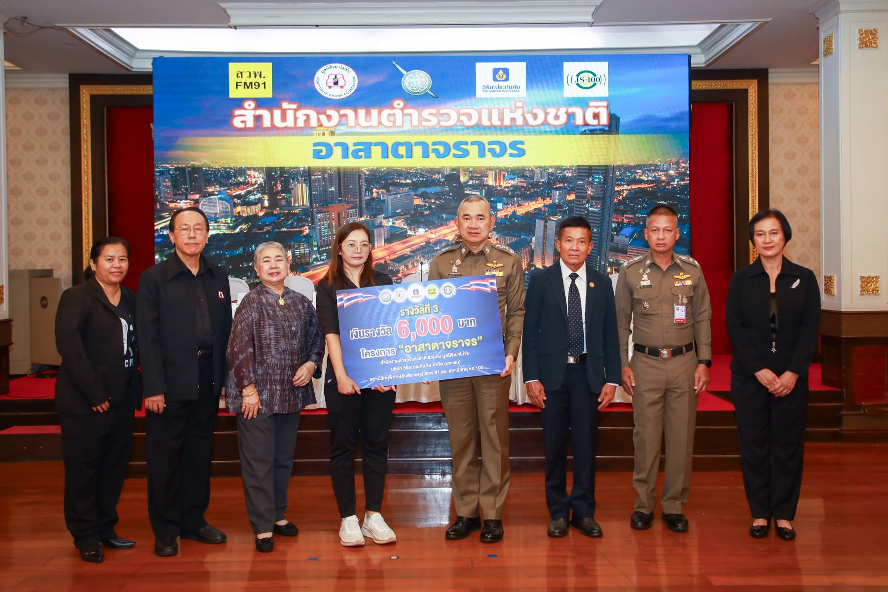 พลตำรวจโท สมประสงค์ เย็นท้วม ผู้ช่วยผู้บัญชาการตำรวจแห่งชาติ พร้อมด้วยนางสาวกานดา วัฒนายิ่งสมสุข ที่ปรึกษาฝ่ายสื่อสารองค์กร บริษัท วิริยะประกันภัย จำกัด (มหาชน) นายแพทย์แท้จริง ศิริพานิช เลขาธิการมูลนิธิเมาไม่ขับ รวมถึงภาคีเครือข่าย ทั้ง จส.100 และ สวพ.91 ร่วมแถลงผลการมอบรางวัลและใบประกาศเกียรติคุณ “โครงการอาสาตาจราจร” ประจำเดือนสิงหาคมและกันยายน พ.ศ. 2568 แก่เจ้าของคลิปที่บันทึกการทำผิดกฎจราจร ทั้งหมด 21 รางวัล รวมเป็นเงินจำนวนทั้งสิ้น 110,000 บาท เพื่อเปิดโอกาสให้ประชาชนได้มีส่วนร่วมป้องกันและลดอุบัติเหตุทางถนน พร้อมตระหนักถึงการปฏิบัติตามกฎจราจรอย่างเคร่งครัด โดยพิธีมอบจัดขึ้น ณ ห้องสารสิน สำนักงานตำรวจแห่งชาติ แขวงปทุมวัน เขตปทุมวัน กรุงเทพฯ