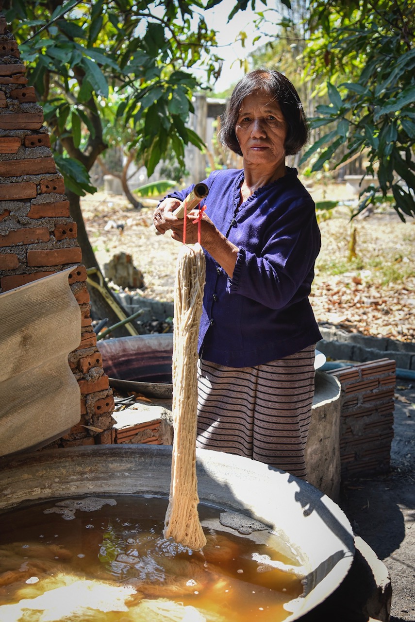 จ.เชียงใหม่ ที่ส่งต่อภูมิปัญญามา 4 รุ่น ตั้งแต่รุ่นทวด รุ่นยาย รุ่นแม่ และรุ่นของ ปลื้ม-ผกาวดี แก้วชมภู ที่เติบโตมากับการทำผ้าฝ้ายทอมือ โดดเด่นด้วยเทคนิคการทอของปราชญ์ชาวบ้านที่ใช้เส้นฝ้ายหลากหลายขนาด แล้วนำมาทอด้วยเทคนิคเส้นเล็กสลับกับเส้นใหญ่เกิดเป็นลวดลายที่ไม่เหมือนใคร รวมถึงการย้อมสีผ้าฝ้ายธรรมชาติจากมูลช้าง ซึ่งเป็นมิตรกับสิ่งแวดล้อม ทำให้ได้เฉดสีใหม่ที่สวยงาม เช่น สีน้ำตาลอมเทาจากมูลช้าง และสีเหลืองจากมูลช้างผสมเปลือกมังคุด เป็นต้น ด้วยฝีมือการถักทอผ้าฝ้ายอันมีเอกลักษณ์ของ Natrada cotton จึงได้มีโอกาสมาเป็นส่วนหนึ่งของผลิตภัณฑ์คุณภาพ ที่วางขายอยู่ใน คิง เพาเวอร์ ซิตี บูทีก ณ วัน แบงค็อก
