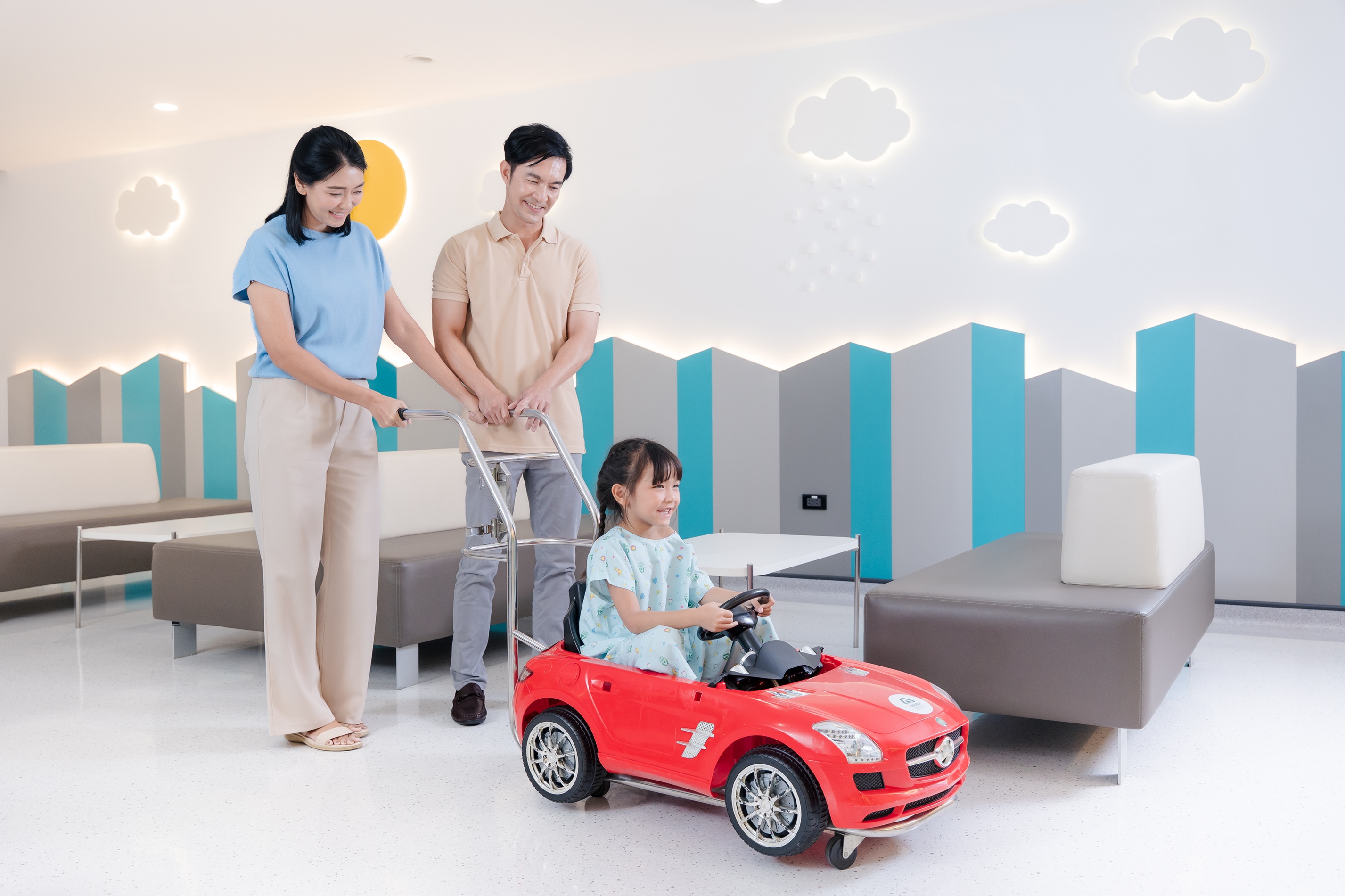 ศูนย์สุขภาพเด็ก โรงพยาบาลนครธน นอกจากจะมีทีมกุมารแพทย์เฉพาะทาง และเครื่องมือที่ทันสมัยแล้ว ยังใส่ใจในรายละเอียดของสถานที่ให้บริการ โดยแบ่งโซนเด็กสุขภาพดีและเด็กป่วยออกจากกัน ป้องกันการแพร่กระจายเชื้อโรค พร้อมห้องตรวจ 21 ห้อง และห้องหัตถการ 5 ห้อง ภายใต้การตกแต่งธีมก้อนเมฆและสายรุ้ง สร้างบรรยากาศอบอุ่นและผ่อนคลาย อีกทั้งยังเป็น One Stop Service ตั้งแต่ลงทะเบียน ตรวจรักษา ชำระเงิน และรับยาในจุดเดียว