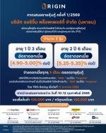 นายพีระพงศ์ จรูญเอก ประธานเจ้าหน้าที่บริหาร บริษัท ออริจิ้น พร็อพเพอร์ตี้ จำกัด (มหาชน) หรือ ORI ผู้พัฒนาธุรกิจอสังหาริมทรัพย์ครบวงจร เปิดเผยว่า เมื่อวันจันทร์ที่ 26 มกราคม 2569 บริษัทฯ ได้ยื่นแบบแสดงรายการข้อมูลการเสนอขายตราสารหนี้และร่างหนังสือชี้ชวนต่อสำนักงานคณะกรรมการกำกับหลักทรัพย์และตลาดหลักทรัพย์ (ก.ล.ต.) เพื่อออกและคาดเสนอขายหุ้นกู้ชนิดระบุชื่อผู้ถือ ประเภทไม่ด้อยสิทธิ ไม่มีประกัน และมีผู้แทนผู้ถือหุ้นกู้ โดยหุ้นกู้ที่ออกจำหน่ายครั้งที่ 1/2569 มีจำนวน 2 ชุด จ่ายดอกเบี้ยทุก 3 เดือน ได้แก่ หุ้นกู้ชุดที่ 1 อายุ 1 ปี 3 เดือน อัตราดอกเบี้ยคงที่ [4.90-5.00]% ต่อปี และ หุ้นกู้ชุดที่ 2 อายุ 2 ปี 6 เดือน อัตราดอกเบี้ยคงที่ [5.25-5.35]% ต่อปี เตรียมเสนอขายระหว่าง 10-12 กุมภาพันธ์ 2569 ผ่านสถาบันการเงิน10 ราย