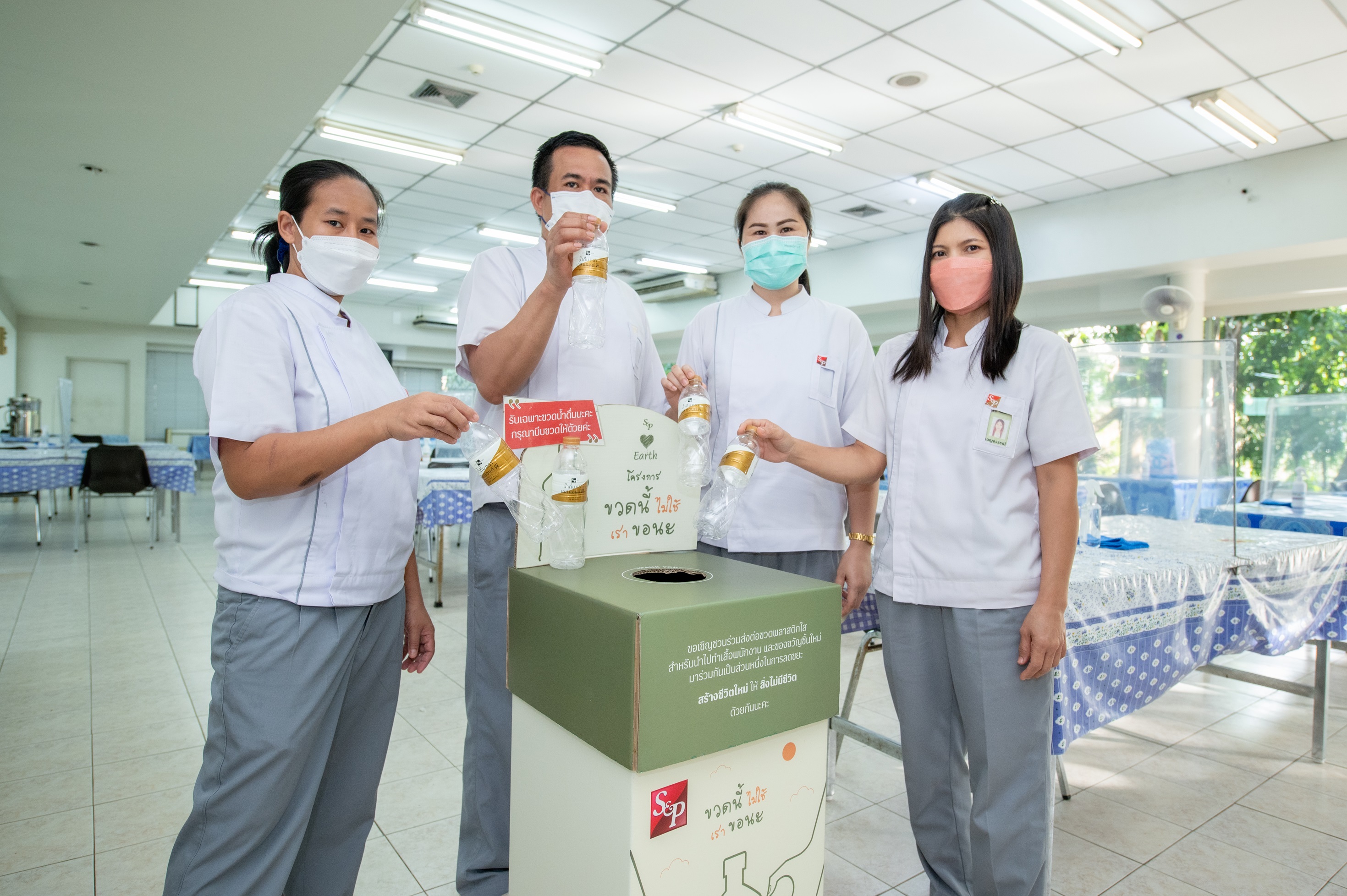 โครงการ “ขวดนี้ไม่ใช้...เราขอนะ” เริ่มดำเนินการตั้งแต่ปี 2563 เพื่อรณรงค์ลูกค้าและพนักงานเก็บขวดน้ำดื่มที่ไม่ใช้แล้วหลังการบริโภค สำหรับส่งต่อไปรีไซเคิลเป็นผลิตภัณฑ์ใหม่ ตามแนวคิดเศรษฐกิจหมุนเวียน และลดปัญหาขยะพลาสติก จากสำนักงาน โรงงานผลิตอาหาร โรงงานผลิตเบเกอรี่S&P และร้านS&P 10 จุดขาย จากนั้นบริษัทฯ ได้ขยายจุดรับขวดมาอย่างต่อเนื่อง ซึ่งปัจจุบันมีจุดรับขวดของโครงการฯ รวมทั้งสิ้น 104 จุดขาย โดยส่งต่อขวดแก่โครงการ Youเทิร์น by GC พันธมิตรด้านความยั่งยืนของบริษัทฯ เพื่อนำเข้าสู่กระบวนการรีไซเคิล ทั้งนี้ ตั้งแต่เริ่มโครงการจนถึงปัจจุบัน S&P ส่งต่อขวดพลาสติกแล้วทั้งสิ้น 13,160 กิโลกรัม ลดการปล่อยก๊าซเรือนกระจกได้ถึง 13,410 กิโลกรัมคาร์บอนไดออกไซด์เทียบเท่า หรือเทียบเท่าการปลูกต้นไม้ได้ถึง 1,504 ต้น