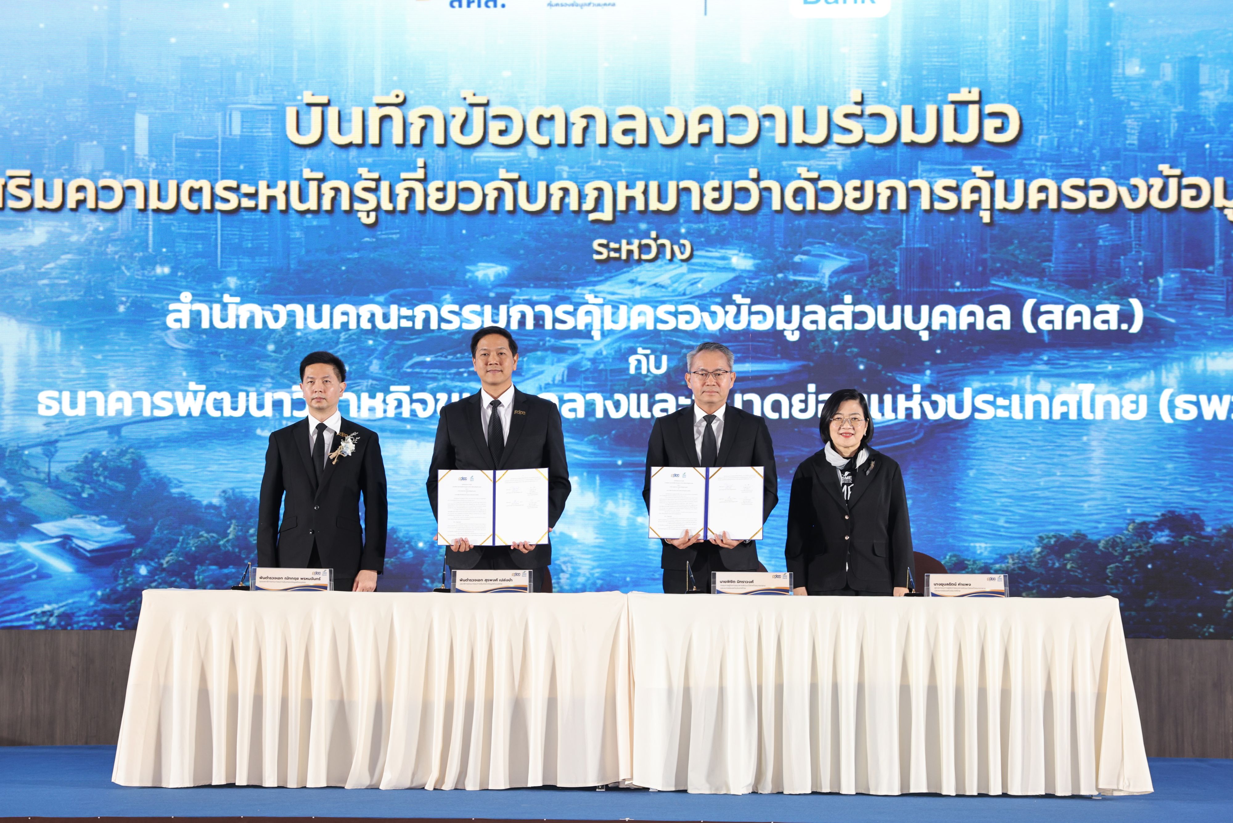 ธนาคารพัฒนาวิสาหกิจขนาดกลางและขนาดย่อมแห่งประเทศไทย (ธพว.) หรือ SME D Bank โดย นายพิชิต มิทราวงศ์ กรรมการผู้จัดการ และสำนักงานคณะกรรมการคุ้มครองข้อมูลส่วนบุคคล (สคส.)  โดย พ.ต.อ.สุรพงศ์ เปล่งขำ เลขาธิการ สคส. ร่วมพิธีลงนามบันทึกข้อตกลงความร่วมมือ (MOU) “การส่งเสริมความตระหนักรู้เกี่ยวกับกฎหมายว่าด้วยการคุ้มครองข้อมูลส่วนบุคคล” (PDPA) โดยความร่วมมือครั้งนี้ ทั้งสองหน่วยงานจะร่วมกันส่งเสริมความรู้ เพื่อให้ผู้ประกอบการเอสเอ็มอี  สามารถปฏิบัติตามกฎหมาย PDPA ได้อย่างถูกต้องเหมาะสม ตลอดจน ช่วยลดความเสี่ยงในการละเมิดข้อมูลส่วนบุคคล  ป้องกันการเกิดต้นทุนธุรกิจจากเหตุข้อมูลรั่วไหล ที่สำคัญ ช่วยสร้างความเชื่อมั่น ปลอดภัย และโอกาสการเติบโตของธุรกิจเอสเอ็มอีในระยะยาว