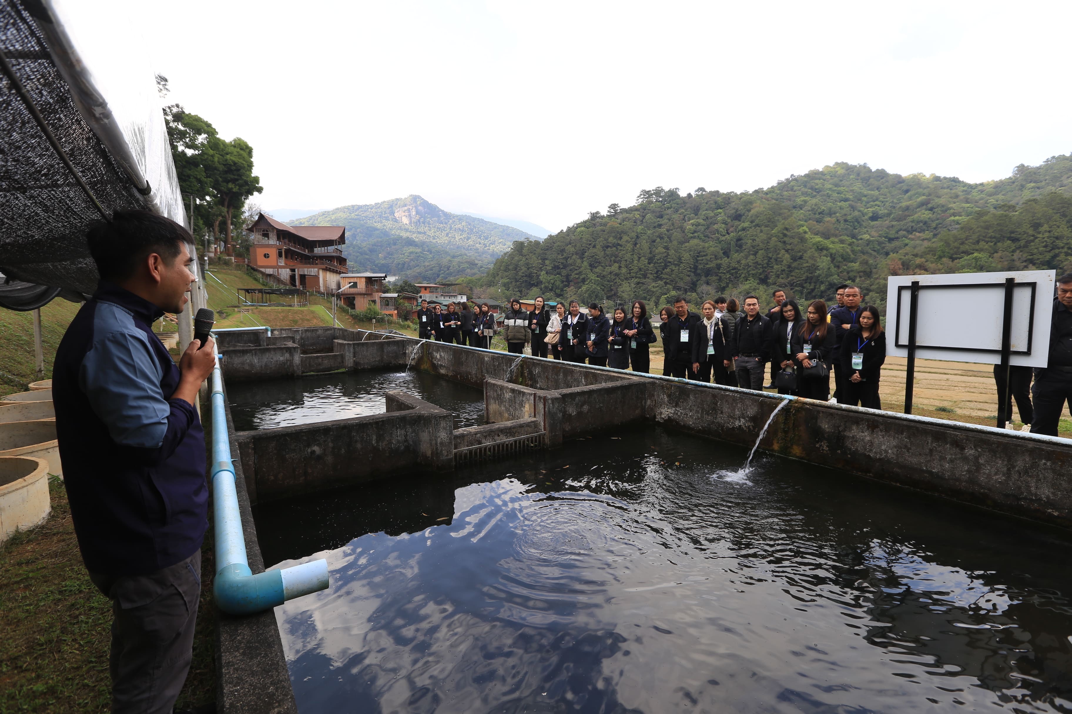 กิจกรรมสำคัญของโครงการในครั้งนี้ คือ การเรียนรู้การเพาะเลี้ยงปลาปลาสเตอร์เจียน ซึ่งเป็นปลาน้ำเย็นที่ไม่ใช่ปลาท้องถิ่นของประเทศไทย แต่สามารถเพาะเลี้ยงได้สำเร็จบนพื้นที่สูงของดอยอินทนนท์ ภายใต้เงื่อนไขของธรรมชาติที่เหมาะสม ทั้งอุณหภูมิ น้ำที่สะอาด และระบบนิเวศที่สมดุล การเพาะเลี้ยงปลาชนิดนี้จึงไม่ใช่เพียงเรื่องของเทคโนโลยี หากแต่ต้องอาศัยความเข้าใจธรรมชาติอย่างลึกซึ้ง และการปรับตัวให้สอดคล้องกับบริบทพื้นที่