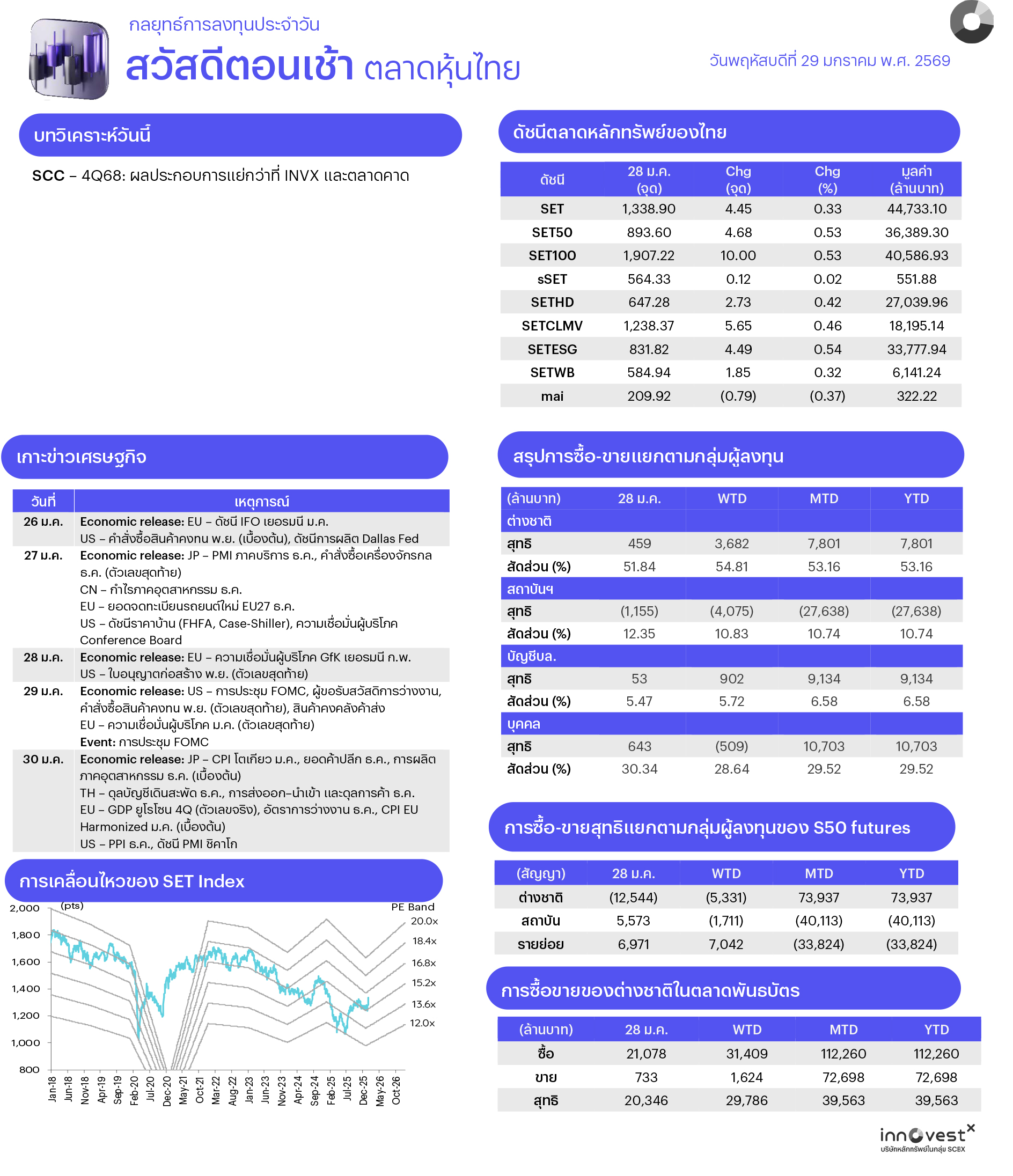 มอง SET มีโอกาสพักตัวบนฐานใหม่ ติดตามทิศทาง Fund Flow และการประกาศงบ 4Q68 ของบจ. ไทย กลยุทธ์ลงทุนจึงแนะนำ “Selective Buy” ใน 2 ธีมหลักและ 3 ธีมเทรดดิ้งที่มีปัจจัยบวกเฉพาะตัว ดังนี้