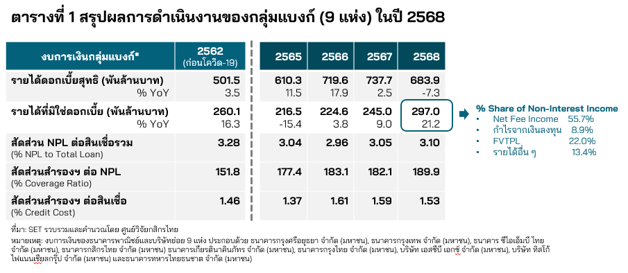 · กลุ่มแบงก์1ปิดจบปี 2568 ด้วยภาพการประคองผลการดำเนินงาน ซึ่งสะท้อนจากการชะลอตัวติดต่อกันเป็นปีที่สองของกำไรสุทธิ