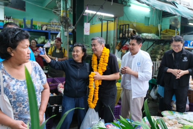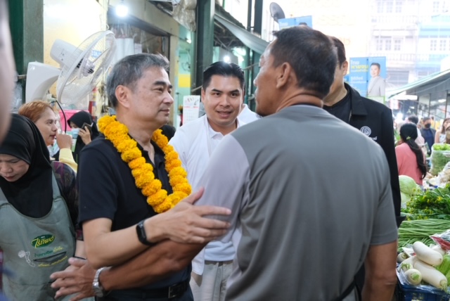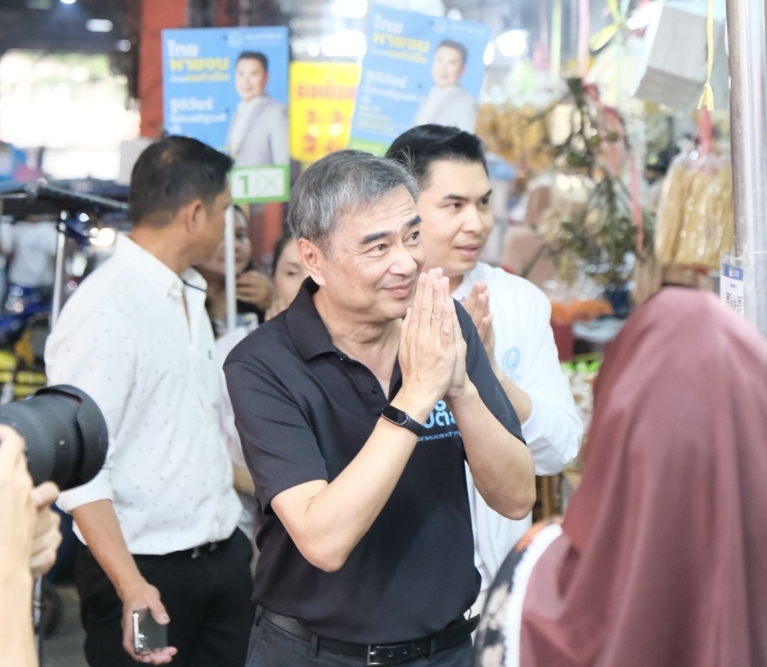 ทันทีที่คณะเดินทางมาถึง บรรยากาศในตลาดเป็นไปอย่างคึกคัก พ่อค้าแม่ค้า กลุ่มนักเรียน นักศึกษา และประชาชนที่สัญจรผ่านไปมา โบกมือทักทายอย่างตื่นเต้น พร้อมเข้ามามอบพวงมาลัยดอกกุหลาบ ขอถ่ายภาพอย่างเป็นกันเอง พร้อมแสดงความยินดีต่อการกลับมารับตำแหน่งหัวหน้าพรรคและแคนดิเดตนายกรัฐมนตรีของนายอภิสิทธิ์อีกครั้ง พ่อค้ารายหนึ่งกล่าวตรงไปตรงมาว่า “ขอให้ได้เป็นนายกฯ อีกครั้ง” พร้อมสอบถามจุดยืนเรื่องการจัดการทุนเทา ซึ่งนายอภิสิทธิ์ย้ำชัดว่า เป็นนโยบายหลักของพรรคประชาธิปัตย์อย่างแน่นอน