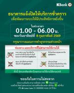 ธนาคารกสิกรไทยแจ้งปิดให้บริการชั่วคราว เพื่อพัฒนาระบบให้มีประสิทธิภาพยิ่งขึ้น ในวันอาทิตย์ที่ 8 กุมภาพันธ์ 2569 เวลา 01:00 น. - 06:00 น. โดยช่องทางและบริการที่ไม่สามารถใช้งานได้ ดังนี้