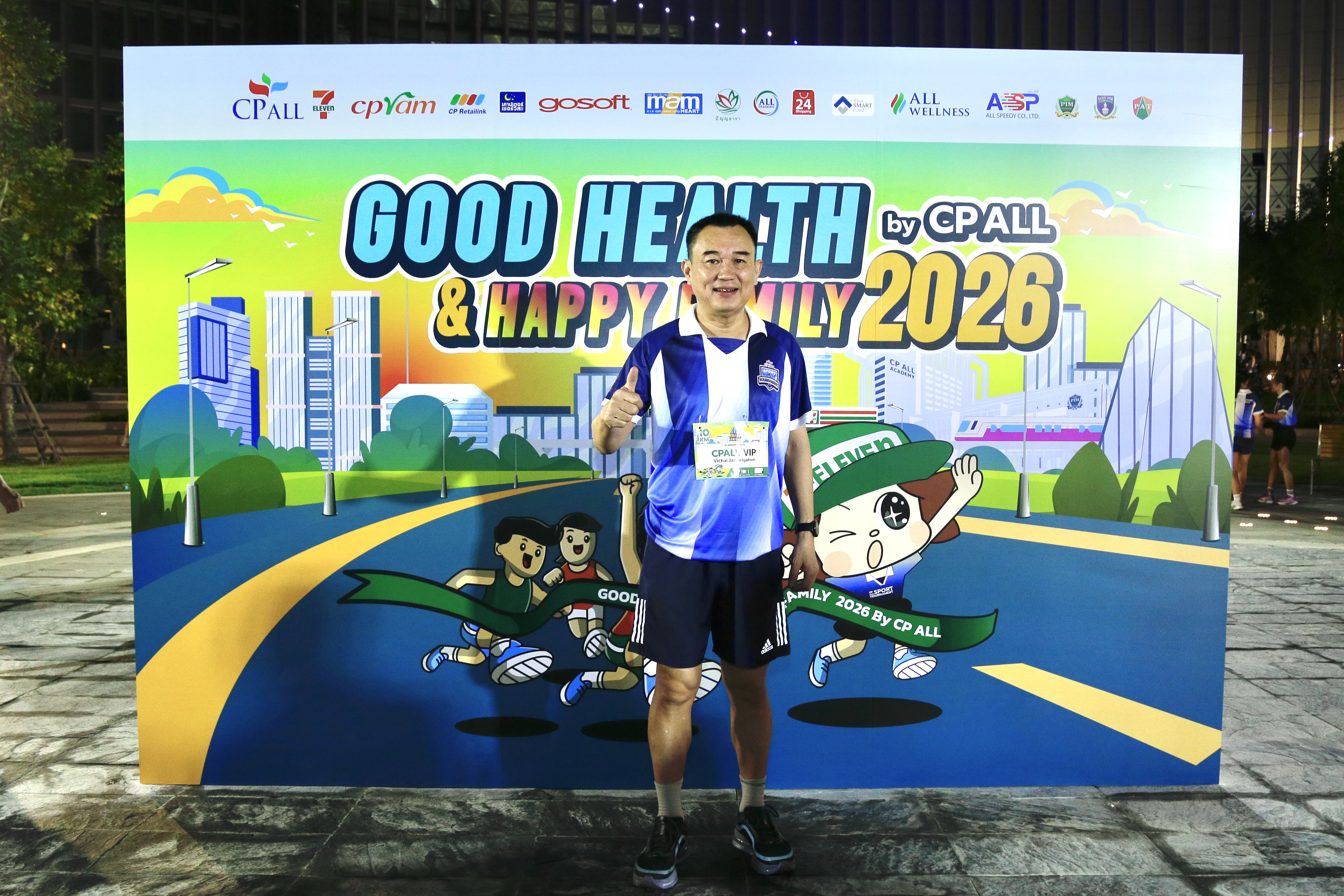นายวิชัย จันทร์จริยากุล กรรมการผู้จัดการ บริษัท ซีพี ออลล์ จำกัด (มหาชน) กล่าวว่า“กิจกรรมนี้ไม่ใช่เพียงการออกกำลังกาย แต่เป็นการสร้างพลังบวกให้แก่ผู้บริหาร พนักงาน และครอบครัว ได้ใช้เวลาร่วมกัน ดูแลสุขภาพกาย พร้อมเติมเต็มสุขภาพใจจากการได้ร่วมแบ่งปันและช่วยเหลือสังคม โดยเฉพาะอย่างยิ่งการส่งกำลังใจไปยังพี่น้องชาวใต้ที่ได้รับผลกระทบจากอุทกภัย”