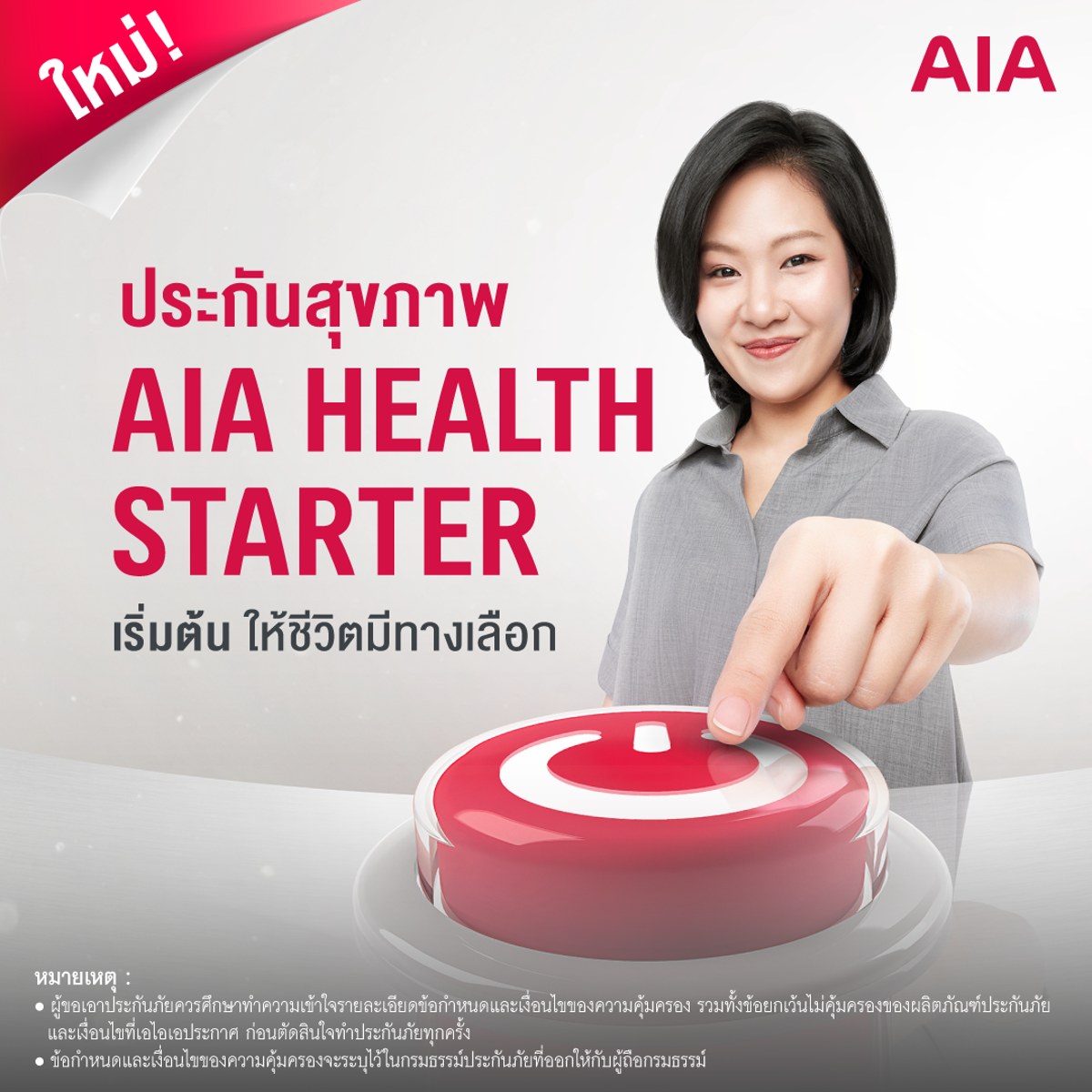 เอไอเอ ประเทศไทย ตอกย้ำผู้นำด้านประกันชีวิตและสุขภาพ เปิดตัวสัญญาเพิ่มเติมสุขภาพ "AIA Health Starter (เอไอเอ เฮลธ์ สตาร์ตเตอร์)" ให้คนไทยได้มีทางเลือกในการรับความคุ้มครองสุขภาพเพื่อความอุ่นใจในยามเกิดเหตุการณ์ไม่คาดคิด ด้วยเบี้ยประกันภัยที่เข้าถึงง่าย พร้อมรับความคุ้มครองค่ารักษาพยาบาลแบบ OPD (ผู้ป่วยนอก) และสนุกกับการดูแลสุขภาพพร้อมรับสิทธิประโยชน์แบบจุใจในโครงการ AIA Vitality ที่สำคัญให้คนไทยได้สบายใจยิ่งขึ้นเมื่อเข้ารับการรักษาที่โรงพยาบาลในโครงการ AIA Smart Network ด้วยค่ารักษาที่สมเหตุสมผล ลดค่าใช้จ่ายส่วนเกิน แถมยังลดปัญหาการเคลม อีกทั้งยังเป็นแบบประกันสุขภาพแรกที่มี Copayment (ค่าใช้จ่ายร่วม) ให้ลูกค้าได้มีทางเลือก เพื่อให้คนไทยได้เริ่มต้นมีสุขภาพและชีวิตที่ดีขึ้นอย่างยั่งยืนไปด้วยกัน ตามคำมั่นสัญญา Healthier, Longer, Better Lives