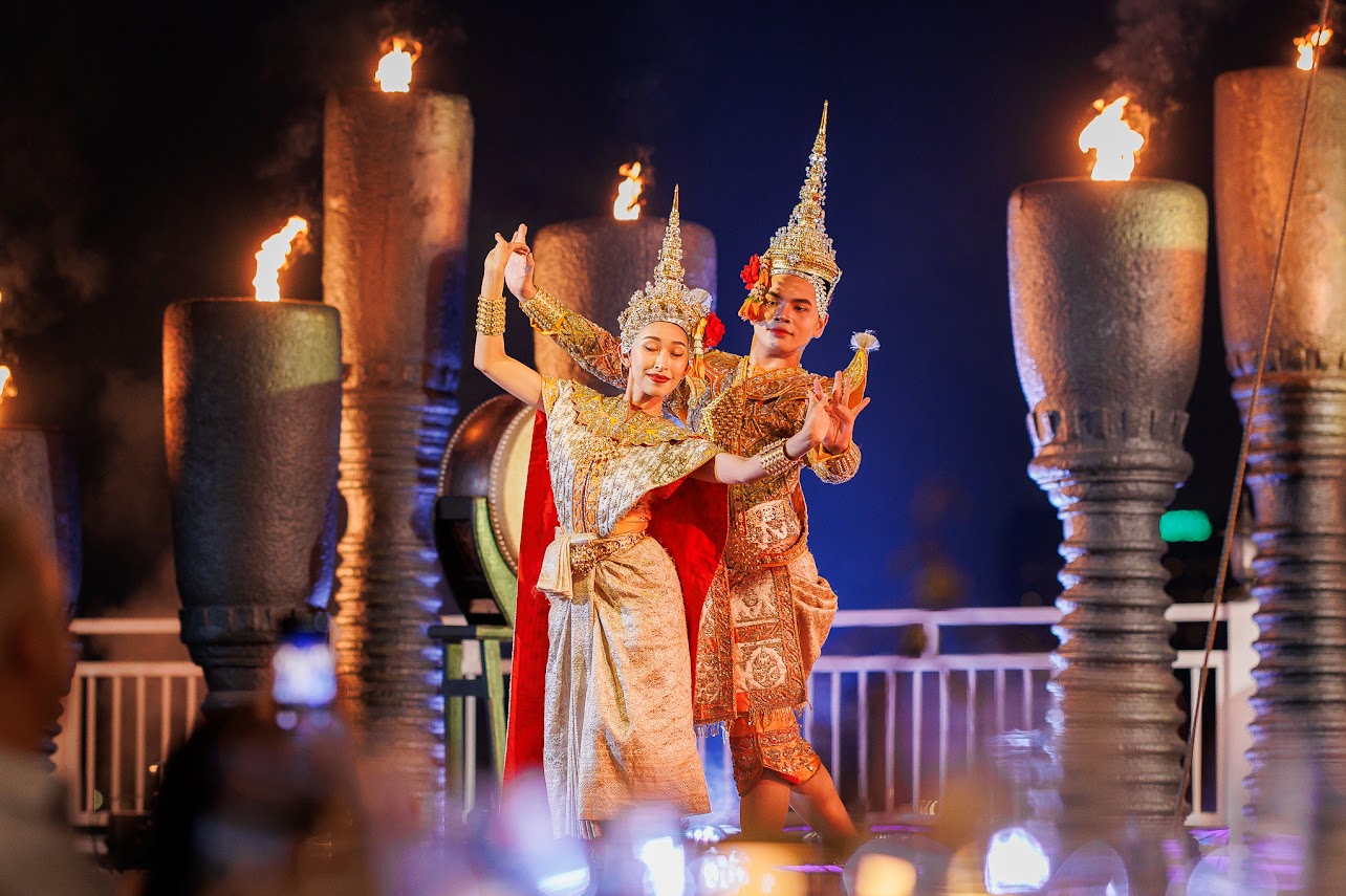 “ศาลา ละคร” ถูกออกแบบให้เป็นมากกว่าห้องอาหาร แต่เป็นพื้นที่เล่าเรื่องวัฒนธรรมไทยผ่านการแสดงร่วมสมัยชุด “สุวรรณสยามนิรันดร์กาล (The Eternal Siam)” ความยาวประมาณ 1 ชั่วโมง ออกแบบโดย ครูนาย – มานพ มีจำรัส ศิลปินศิลปาธร จากกระทรวงวัฒนธรรม ถ่ายทอดเรื่องราวประวัติศาสตร์ วิถีชีวิต และศิลปะการแสดงของไทย ตั้งแต่ความผูกพันกับสายน้ำ ขบวนพยุหยาตราชลมารค ไปจนถึงมรดกทางวัฒนธรรมอย่างหนังใหญ่และเพลงพื้นบ้าน ในรูปแบบที่เข้าถึงผู้ชมร่วมสมัย