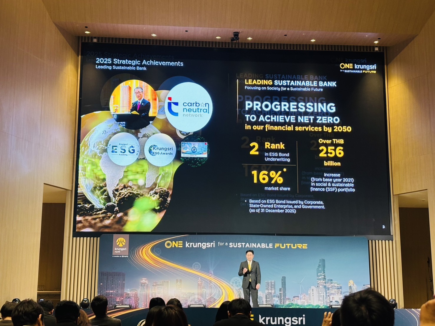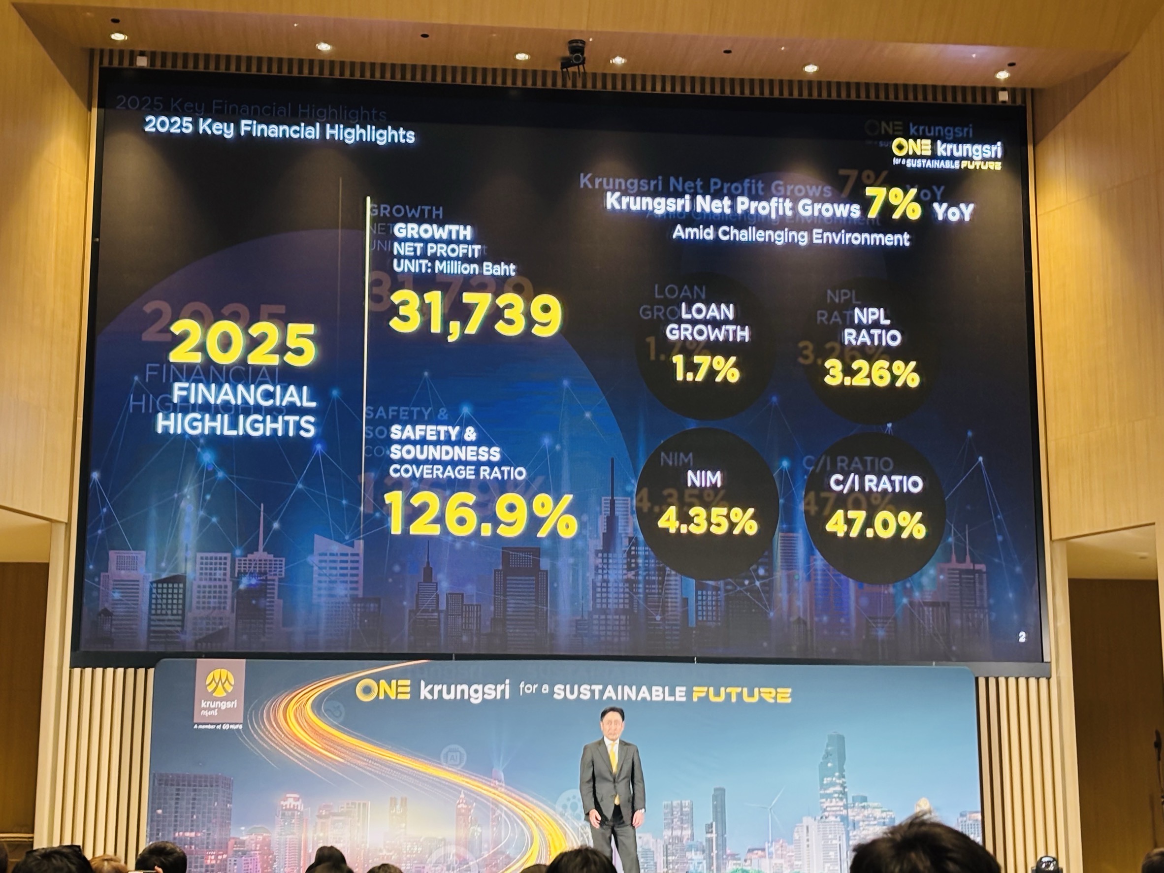 ภายในงานแถลงข่าว นายเคนอิจิ ยามาโตะ กรรมการผู้จัดการใหญ่และประธานเจ้าหน้าที่บริหาร ธนาคารกรุงศรีอยุธยา จำกัด (มหาชน) กล่าวว่า “ท่ามกลางความท้าทายเชิงโครงสร้างที่ประเทศไทยกำลังเผชิญ ในฐานะสถาบันการเงินที่มีความสำคัญเชิงระบบ (D-SIB) กรุงศรีตระหนักดีว่าบทบาทของเราต้องเป็นมากกว่าผู้ให้สินเชื่อ กล่าวคือ เรามุ่งมั่นเป็นพันธมิตรที่ช่วยเสริมสร้างความแข็งแกร่งทางเศรษฐกิจ พร้อมเคียงข้างภาคครัวเรือนและผู้ประกอบการ SME ให้ก้าวต่อไปได้ สำหรับทิศทางการดำเนินธุรกิจของกรุงศรีในปี 2569 เรายังคงเดินหน้าเสริมสร้างความยั่งยืนในทุกมิติ มุ่งเน้นกลยุทธ์ ONE Krungsri ผนึกกำลังเพื่ออนาคตที่ยั่งยืน โดยผสานพลังของทุกกลุ่มธุรกิจของกรุงศรีทั้งในไทยและเครือข่ายในอาเซียนรวมถึง MUFG เพื่อส่งมอบประสบการณ์ และโซลูชันที่ไร้รอยต่อให้กับลูกค้า เป้าหมายสูงสุดของเราไม่ใช่เพียงการเติบโตของธนาคาร แต่คือการสร้างรากฐานความมั่นคงในระยะยาวให้กับลูกค้า ภาคธุรกิจ และระบบเศรษฐกิจไทยโดยรวม”
