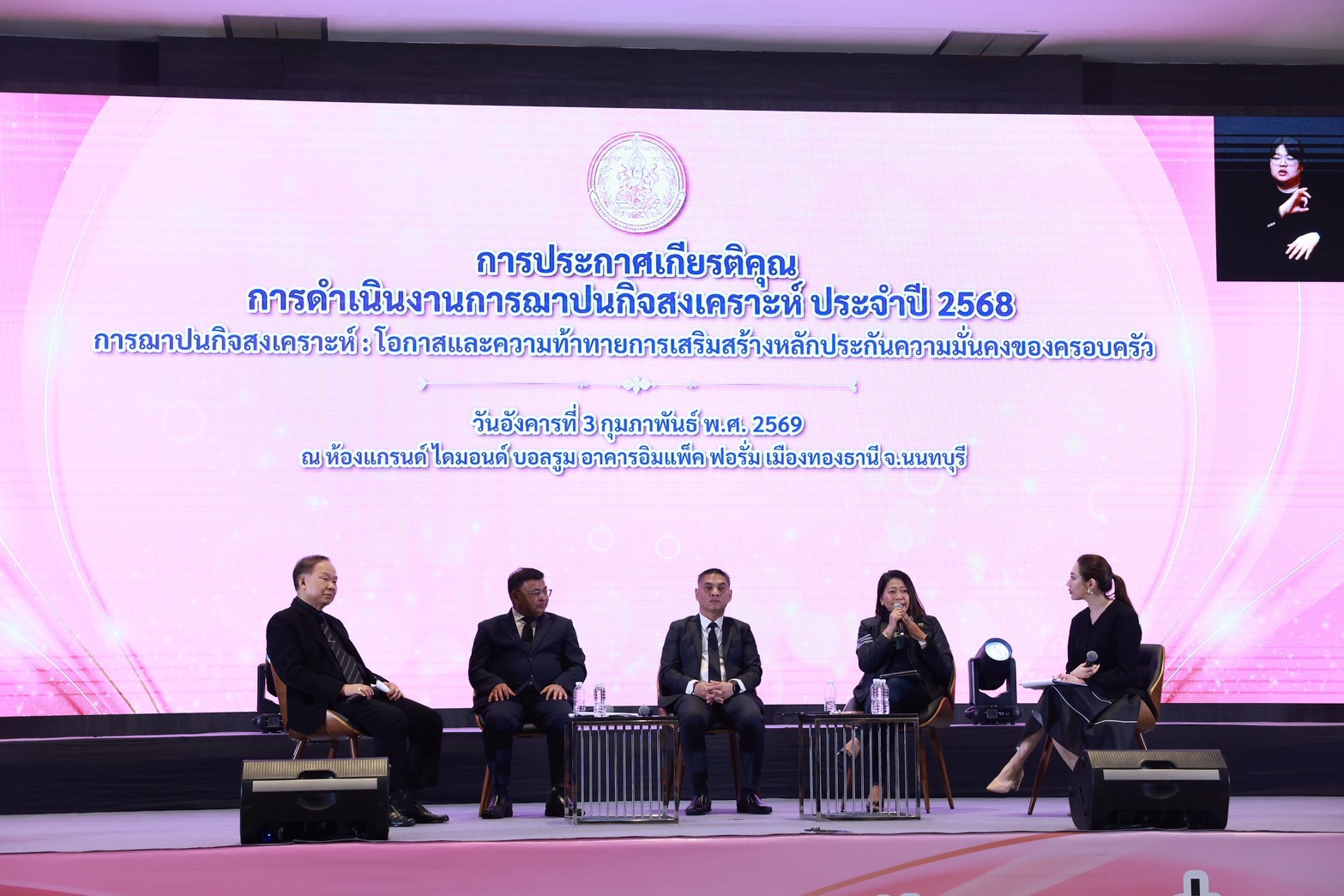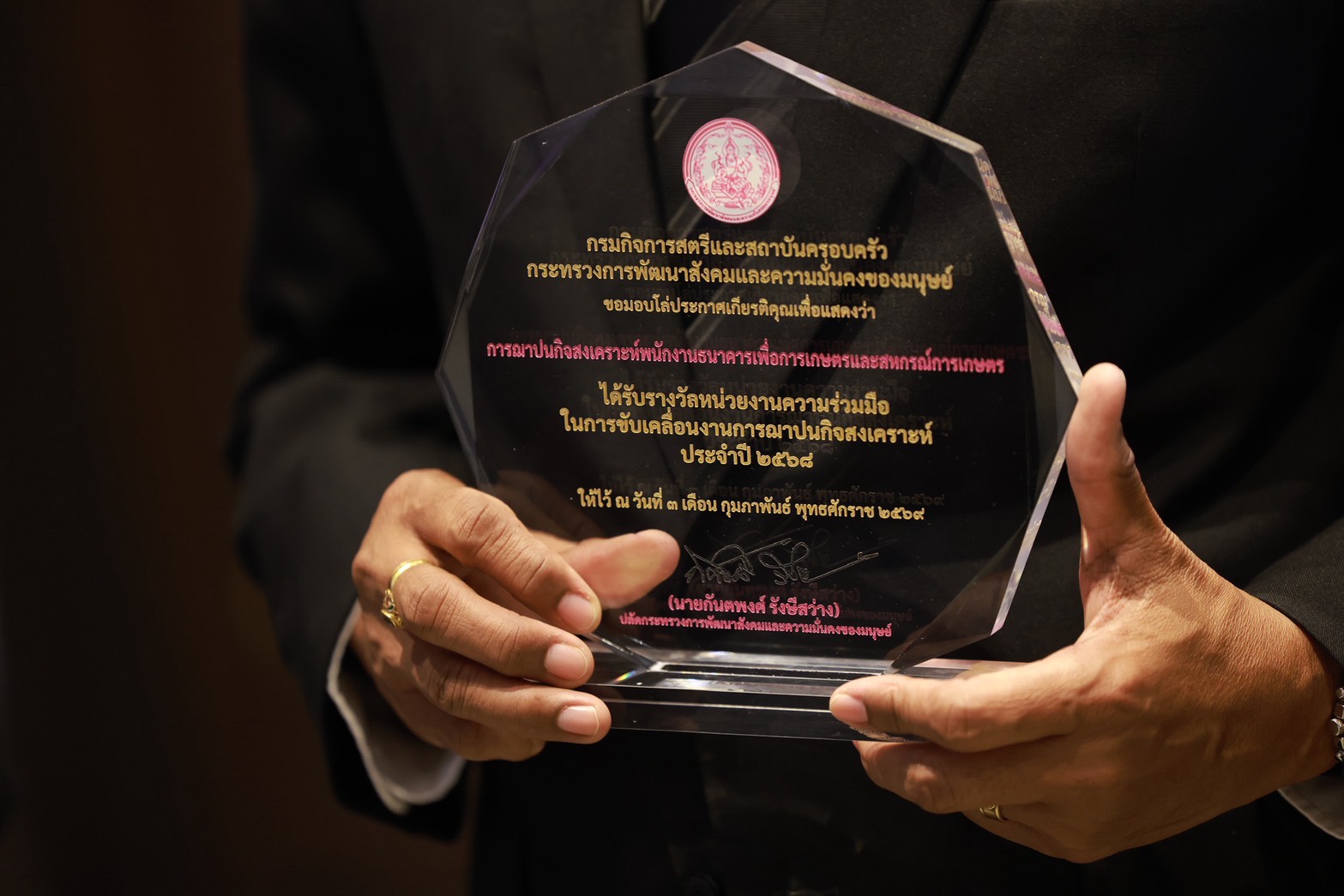 นายณะที ไกรลพ ผู้ช่วยผู้จัดการธนาคารเพื่อการเกษตรและสหกรณ์การเกษตร (ธ.ก.ส.) รับรางวัลการฌาปนกิจสงเคราะห์ภาครัฐของสมาคมฌาปนกิจสงเคราะห์พนักงาน ธ.ก.ส. พร้อมด้วยนางสาวพรหมกร พรหมขัติแก้ว ผู้ช่วยผู้จัดการ ธ.ก.ส. รับรางวัลหน่วยงานความร่วมมือในการขับเคลื่อนงานการฌาปนกิจสงเคราะห์ในงานประกาศเกียรติคุณการดำเนินงานการฌาปนกิจสงเคราะห์ ประจำปี 2568 ภายใต้แนวคิด “การฌาปนกิจสงเคราะห์ : โอกาสและความท้าทายการเสริมสร้างหลักประกันความมั่นคงของครอบครัว” ซึ่งจัดขึ้นโดยกรมกิจการสตรีและสถาบันครอบครัว เพื่อส่งเสริมการดำเนินงานการฌาปนกิจสงเคราะห์ภาครัฐ และสมาคมฌาปนกิจสงเคราะห์ให้มีประสิทธิภาพ รวมทั้งยกย่องเชิดชูเกียรติและเสริมพลังการดำเนินงานการฌาปนกิจสงเคราะห์อย่างยั่งยืน โดย ธ.ก.ส.ได้เข้าร่วมเสวนาในหัวข้อ “ก้าวต่อไปของการฌาปนกิจสงเคราะห์ เพื่อการสร้างหลักประกันครอบครัวอย่างยั่งยืน” และภายในงานยังได้ร่วมออกบูธนำเสนอระบบ Smart Chapa ที่ ธ.ก.ส. ได้รับรางวัล SOE Award ด้านบริการดีเด่น ประจำปี 2568 ที่ยกระดับบริการสมาคมฌาปนกิจสงเคราะห์ลูกค้า ธ.ก.ส. สู่ระบบดิจิทัล ซึ่งเป็นระบบ Back office สำหรับให้สมาคมฯ ใช้งาน เป็นการอำนวยความสะดวกให้เจ้าหน้าที่สามารถให้บริการได้อย่างสะดวก รวดเร็ว ถูกต้องและปลอดภัย ลดขั้นตอนและเวลาในการดำเนินงาน รวมถึงเป็นการลดต้นทุนค่าใช้จ่ายเรื่องเอกสาร และสมาชิกสมาคมฌาปนกิจสงเคราะห์ลูกค้าธ.ก.ส. สามารถเข้าถึงข้อมูลต่าง ๆ และทำธุรกรรมได้ด้วยตนเอง (Self Service) ตลอดเวลา ผ่าน Application A-Chapa โดยไม่ต้องเดินทางมาที่สมาคมฯ ช่วยลดค่าใช้จ่ายการเดินทาง สร้างความเชื่อมั่นในความโปร่งใสของสมาคมฯ ณ ห้องแกรนด์ ไดมอนด์ บอลรูม อาคารอิมแพ็ค ฟอรั่ม เมืองทองธานี จังหวัดนนทบุรี เมื่อวันที่ 3 กุมภาพันธ์ 2569