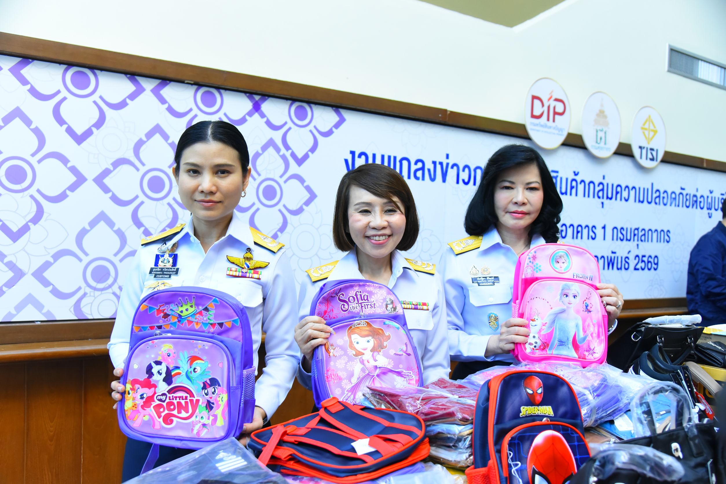1. วันที่ 13 มกราคม 2569 สำนักงานศุลกากรท่าเรือแหลมฉบัง ตรวจสอบสินค้าขาเข้า จากประเทศจีน พบกระเป๋าคละแบบมีลายรูปประดิษฐ์ ‘FROZEN’ ‘SOFIA’ ‘SPIDERMAN’ ‘MY LITTLE PONY’ และ ‘KARL LAGERFELD’ ปริมาณรวม 1,800 ชิ้น ซึ่งไม่ได้สำแดงในใบขนสินค้าขาเข้า และเจ้าของเครื่องหมายการค้ายืนยันว่าสินค้าดังกล่าว เป็นสินค้าละเมิดสิทธิในเครื่องหมายการค้า มูลค่าความเสียหายทางเศรษฐกิจ 2.48 ล้านบาท