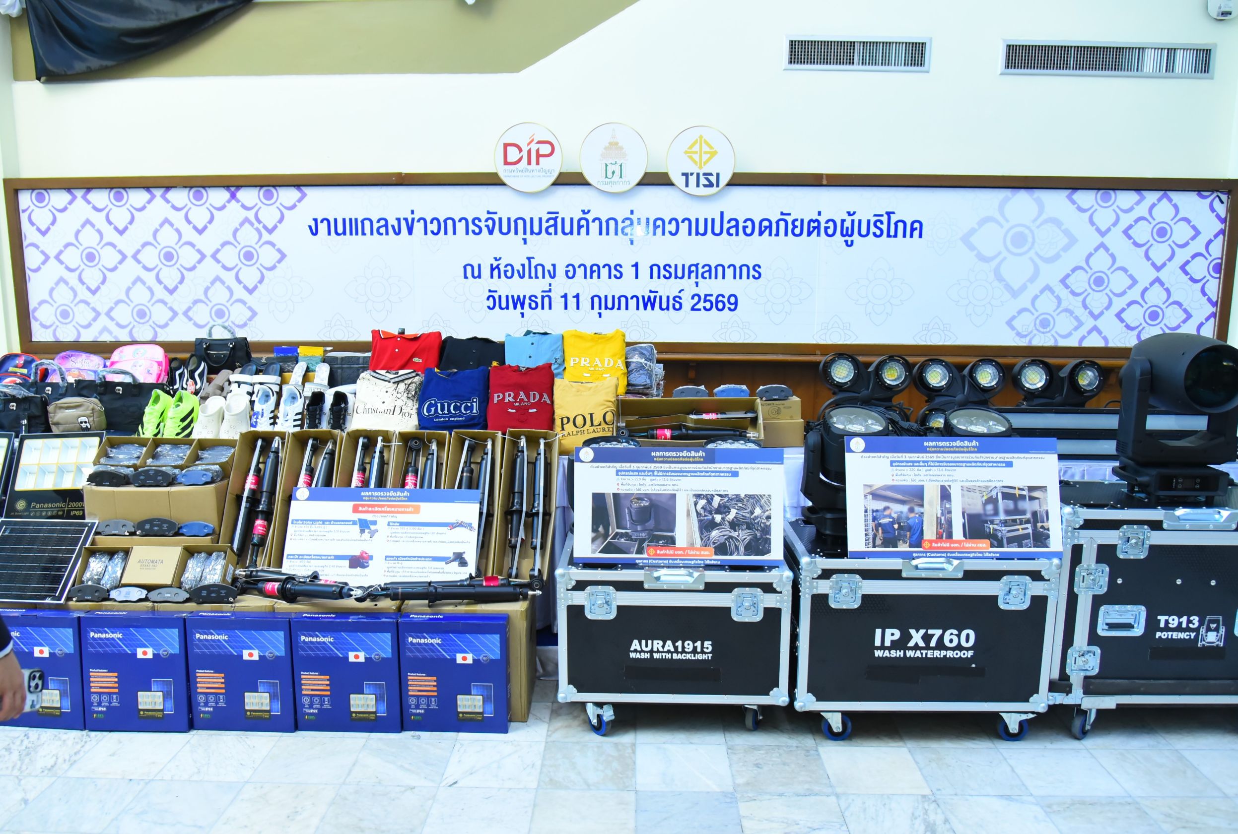 วันนี้ (วันพุธที่ 11 กุมภาพันธ์ 2569) เวลา 13.30 น. กรมศุลกากรร่วมกับสำนักงานมาตรฐานผลิตภัณฑ์อุตสาหกรรม (สมอ.) แถลงผลการปฏิบัติการบุกทลายโกดังกลางกรุง ยึดอุปกรณ์ส่องสว่างที่ไม่ได้มาตรฐานผลิตภัณฑ์อุตสาหกรรม (มอก.) พร้อมแถลงผลการบูรณาการกับกรมทรัพย์สินทางปัญญาในการตรวจยึดสินค้านำเข้าที่ละเมิดเครื่องหมายการค้า รวมมูลค่าความเสียหายทางเศรษฐกิจกว่า 237 ล้านบาท ซึ่งผลการดำเนินการดังกล่าวเป็นไปตามนโยบายรัฐบาลที่ให้เข้มงวดกับการป้องกันและปราบปรามสินค้าไม่ได้มาตรฐาน รวมถึงสินค้าละเมิดลิขสิทธิ์และเครื่องหมายการค้า โดยมีนายพันธ์ทอง ลอยกุลนันท์ อธิบดีกรมศุลกากร นายเอกนิติ รมยานนท์ เลขาธิการสำนักงานมาตรฐานผลิตภัณฑ์อุตสาหกรรม และนายอาวุธ วงศ์สวัสดิ์ รองอธิบดีกรมทรัพย์สินทางปัญญา ร่วมกันแถลงข่าว ณ ห้องโถง อาคาร 1 กรมศุลกากร
