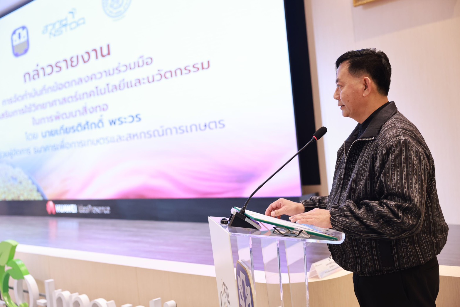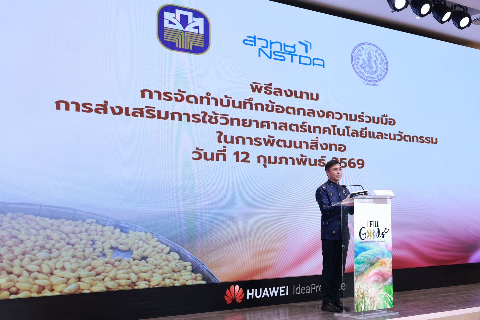นายฉัตรชัย ศิริไล ผู้จัดการธนาคารเพื่อการเกษตรและสหกรณ์การเกษตร (ธ.ก.ส.) ร่วมพิธีลงนามบันทึกความเข้าใจ (MOU) ในการส่งเสริมการใช้วิทยาศาสตร์ เทคโนโลยี และนวัตกรรมในการพัฒนาสิ่งทอและผ้าไหมไทยร่วมกับกรมหม่อนไหม และสำนักงานพัฒนาวิทยาศาสตร์และเทคโนโลยีแห่งชาติ (สวทช.) เพื่อยกระดับประสิทธิภาพการผลิตและมาตรฐานสิ่งทอและผ้าไหมไทยตลอดห่วงโซ่การผลิต ตั้งแต่ต้นน้ำ กลางน้ำ จนถึงปลายน้ำ ผ่านการแลกเปลี่ยนข้อมูล การถ่ายทอดองค์ความรู้ด้านการเงิน การตลาด วิทยาศาสตร์ เทคโนโลยี และนวัตกรรม รวมถึงการสนับสนุนบุคลากร ทรัพยากร และงบประมาณ เพื่อเพิ่มขีดความสามารถในการแข่งขันของเกษตรกรและผู้ประกอบการไทยอย่างยั่งยืน กำหนดระยะเวลาความร่วมมือ 5 ปี (พ.ศ. 2569 – 2574) ซึ่งภายใต้ความร่วมมือดังกล่าว เป็นหนึ่งในแผนยุทธศาสตร์ ธ.ก.ส. ในการทำ Agri-Transformation ที่มุ่งใช้เทคโนโลยี องค์ความรู้ในการยกระดับคุณภาพผลิตผลทางการเกษตรสู่สินค้าสำเร็จรูปที่มีคุณภาพสูง Re-skill เกษตรกรให้ มุ่งสู่เกษตรแม่นยำ เป็นมิตรต่อสิ่งแวดล้อม สร้าง eco-system มุ่งสร้างรายได้สูงและใช้แรงงานน้อยให้กับเกษตรกร