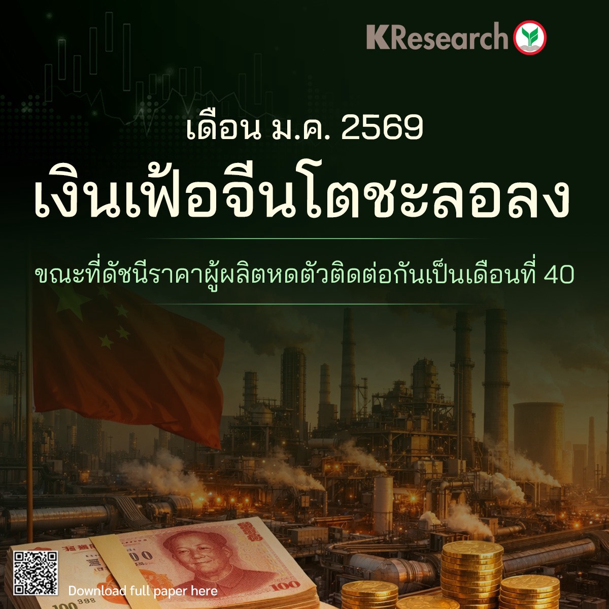 ในปี 2569 เงินเฟ้อจีนมีแนวโน้มเติบโตเพิ่มขึ้นจากปีก่อนแต่คาดว่ายังอยู่ในระดับต่ำ โดยมีรายละเอียด ดังนี้