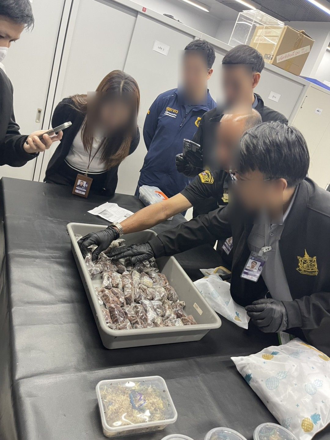 เมื่อวันที่ 12 กุมภาพันธ์ 2569 สำนักงานศุลกากรตรวจของผู้โดยสาร ท่าอากาศยานสุวรรณภูมิและกองสืบสวนและปราบปราม กรมศุลกากร บูรณาการความร่วมมือกับด่านตรวจสัตว์ป่าท่าอากาศยานสุวรรณภูมิและหน่วยงานอื่นที่เกี่ยวข้อง จับกุมผู้โดยสารชาย สัญชาติเกาหลี ซึ่งเดินทางจากเมืองมอมบาซา สาธารณรัฐเคนยาผ่านกรุงแอดดิสอาบาบา สหพันธ์สาธารณรัฐประชาธิปไตยเอธิโอเปีย ปลายทางท่าอากาศยานสุวรรณภูมิ ประเทศไทยผลการตรวจค้นพบ สัตว์มีชีวิตจำพวก แมงมุมทารันทูล่า แมงป่อง ตะขาบ และจิ้งจกแคระ จำนวนกว่า 400 ตัว มูลค่าเบื้องต้นประมาณ 75,000 บาท