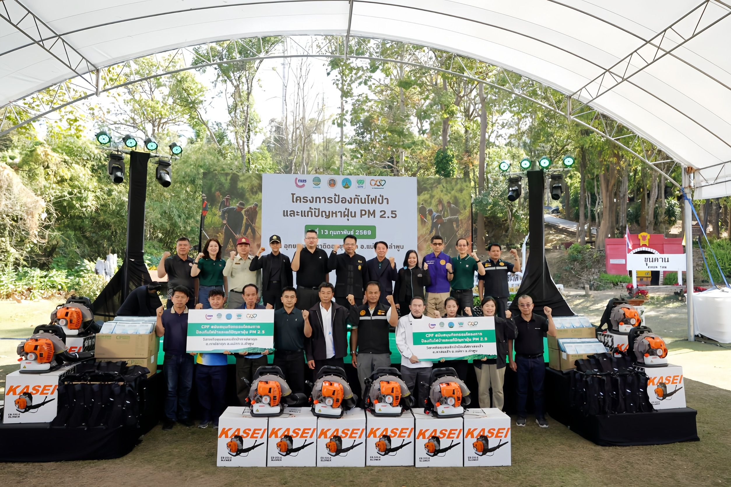 ล่าสุด “โครงการป้องกันไฟป่าและแก้ปัญหาฝุ่น PM 2.5” จากความร่วมมือของสำนักงาน ก.พ.ร. สำนักงานคณะกรรมการส่งเสริมการลงทุน (BOI) กรมป่าไม้ และ บริษัท เจริญโภคภัณฑ์อาหาร จำกัด (มหาชน) หรือ ซีพีเอฟ สร้างต้นแบบการป้องกันไฟป่าและลดผลกระทบจากฝุ่น PM 2.5 อย่างยั่งยืน นำร่องโครงการฯ ครอบคลุมพื้นที่ป่าชุมชนในตำบลทาปลาดุกและตำบลทาสบเส้า รวม 12 หมู่บ้าน บนพื้นที่กว่า 20,000 ไร่ ดำเนินงานต่อเนื่องเป็นระยะเวลา 3 ปี (พ.ศ.2569–2571)