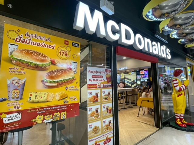 McDonald’s เสิร์ฟความมั่งมีด้วย “มั่งมีเบอร์เกอร์” เบอร์เกอร์ทรงยาวซอสพริกไทยดำ เลือกได้ทั้งหมูและไก่ชิ้นใหญ่จุใจในราคาเริ่มต้นชิ้นละ 119 บาท และสามารถอิ่มคุ้มเป็นชุดกับเคอร์ลี่ฟรายส์พร้อมเครื่องดื่มในราคาชุดละ 169 บาทเท่านั้น นอกจากนี้เสริมโชคทั้ง 4 ด้านกับตุ๊กตานำโชคสุดเอ็กซ์คลูซีพเฉพาะแมคโดนัลด์ประเทศไทยเท่านั้น Choonsik คาแรคเตอร์แมวน้อยสุดคิ้วท์ให้ได้สะสมกันง่าย ๆ เพียงซื้อ ตุ๊กตานำโชค Choonsik พร้อมมั่งมีเบอร์เกอร์ 1 ชิ้น (ปลาหรือหมู) และเครื่องดื่ม เริ่มต้นชุดละ 399 บาทเท่านั้น