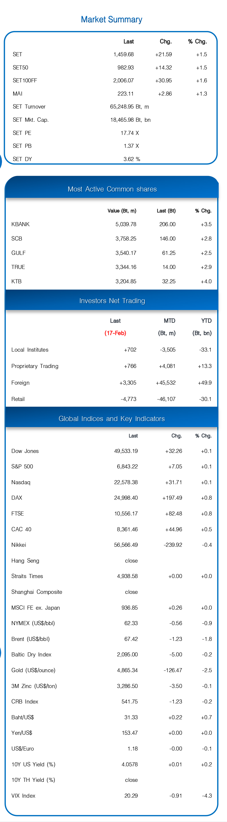 หุ้นโลกวันก่อน (17 ก.พ.)