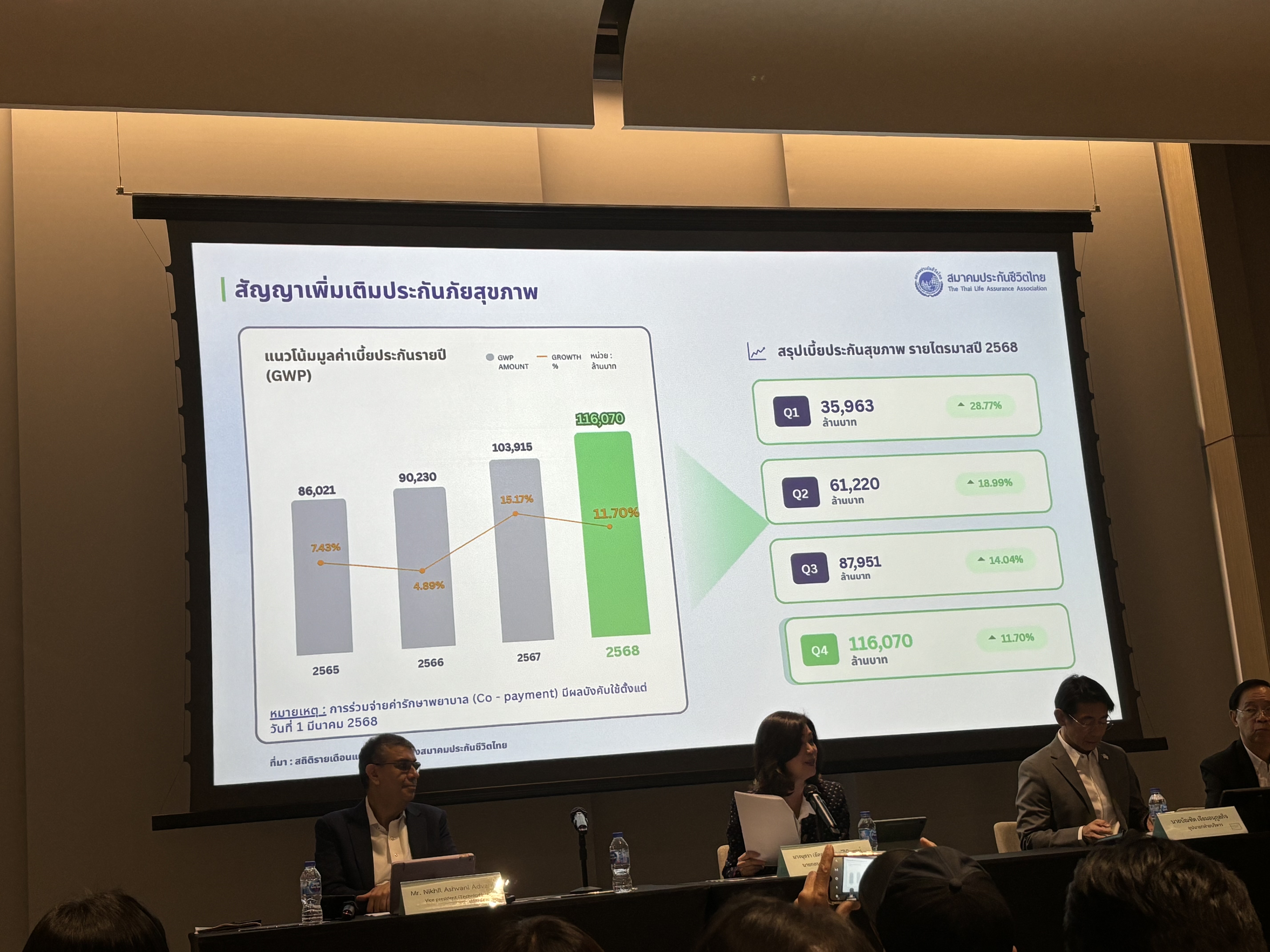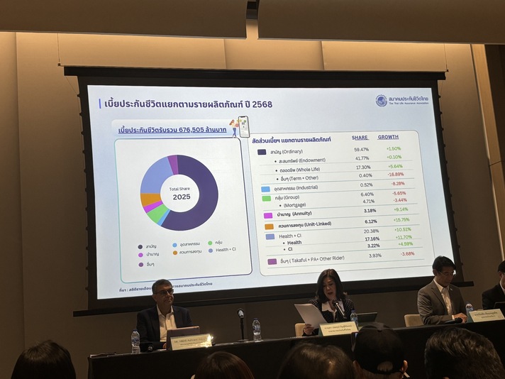 สมาคมประกันชีวิตไทย เผยผลการดำเนินงานธุรกิจประกันชีวิตในปี 2568 มีอัตราการเติบโต ร้อยละ 3.45 ด้วยเบี้ยประกันชีวิตรับรวม 676,505 ล้านบาท ท่ามกลางความผันผวนของเศรษฐกิจโลก พร้อมเร่งปรับกลยุทธ์ยกระดับนวัตกรรมด้านผลิตภัณฑ์และบริการ เพื่อขับเคลื่อนอุตสาหกรรมสู่ความยั่งยืน โดยคาดการณ์ ปี 2569 เติบโตร้อยละ 2.50 - 3.50