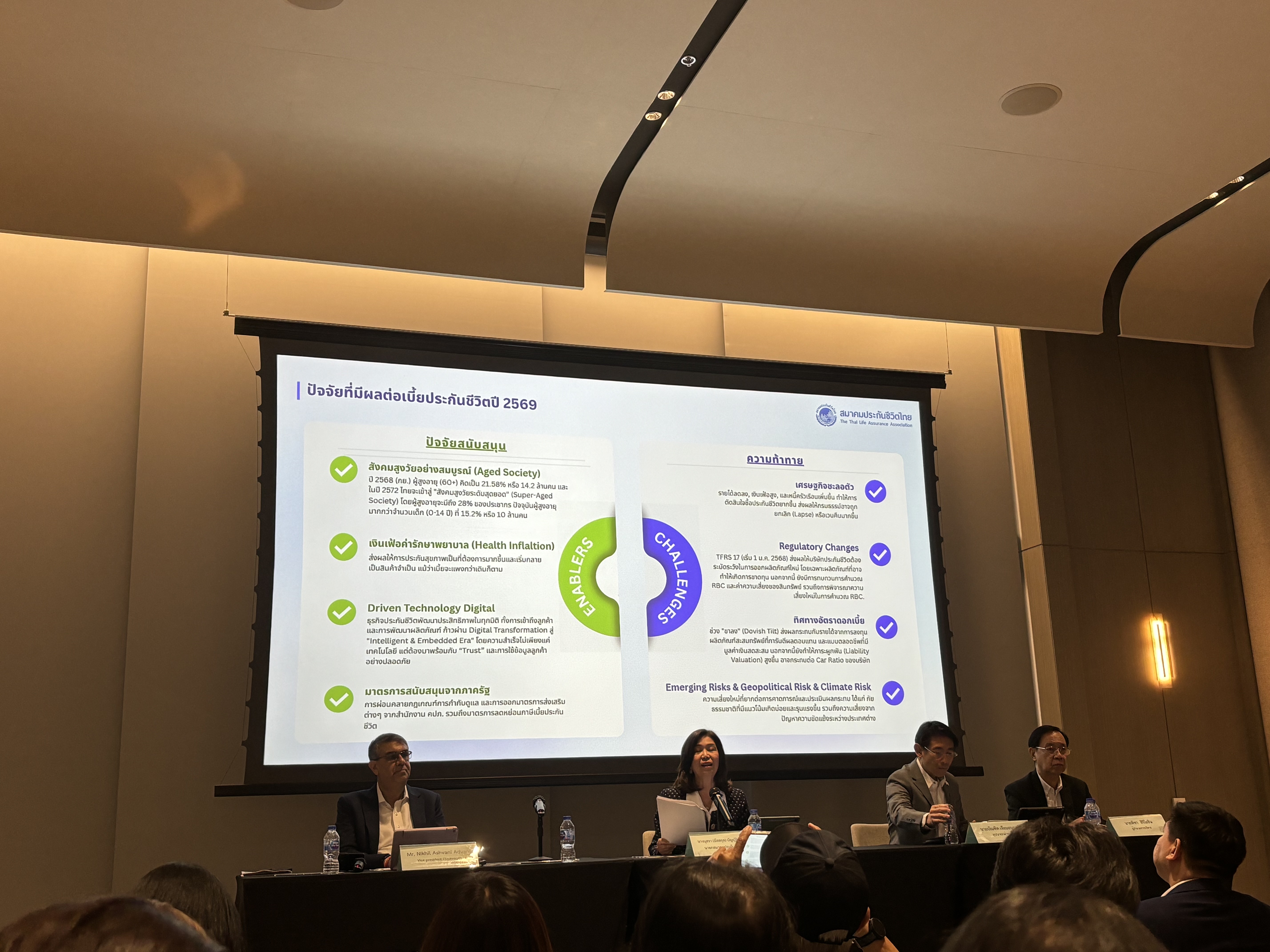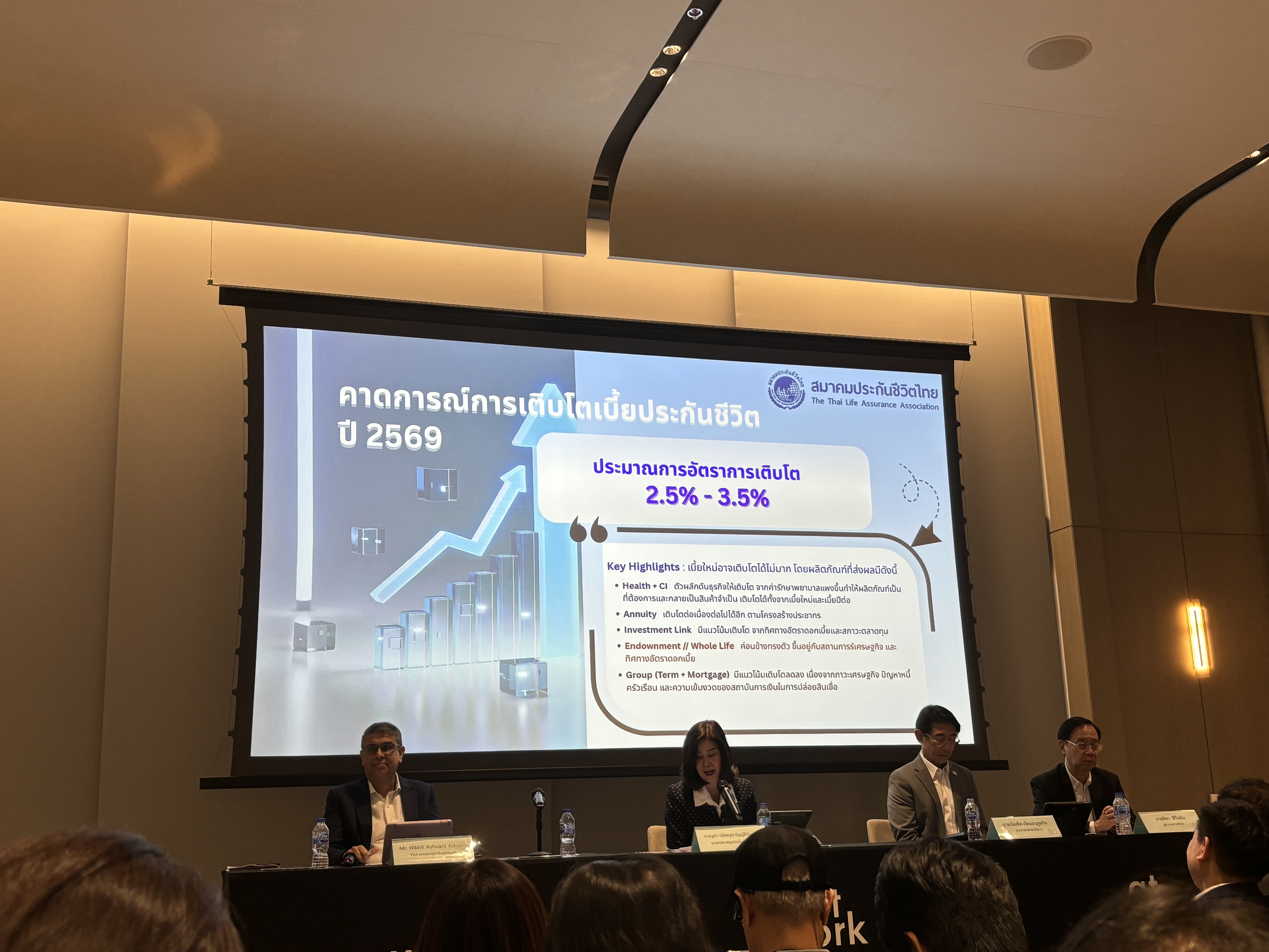 สำหรับทิศทางและแนวโน้มธุรกิจประกันชีวิต ปี 2569 สมาคมฯ คาดการณ์ว่าธุรกิจจะยังคงมีทิศทางเติบโตอย่างต่อเนื่อง โดยประเมินอัตราการเติบโตอยู่ในช่วงร้อยละ 2.50 - 3.50 จากปัจจัยสนับสนุนที่ประชาชนตระหนักถึงผลกระทบของอัตราเงินเฟ้อทางการแพทย์ (Medical Inflation) ที่เพิ่มสูงขึ้นทุกปีเฉลี่ยปีร้อยละ 8 – 10 โดยในปี 2569 จะสูงถึงร้อยละ 10.8 (ข้อมูลจาก WTW) ซึ่งสูงกว่าอัตราเงินเฟ้อผู้บริโภคทั่วไปอย่างมีนัยสำคัญ ดังนั้นความกังวลนี้จึงทำให้ประชาชนเริ่มมองหาความคุ้มครองทางการเงินที่ช่วยลดภาระค่าใช้จ่ายด้านสุขภาพในอนาคตมากขึ้น นอกจากนี้ การขยายช่วงอายุการรับประกันสุขภาพออกไปจนถึง 80 ปี ยังเป็นปัจจัยสนับสนุนให้สัญญาเพิ่มเติมสุขภาพและโรคร้ายแรงมีการเติบโตอย่างต่อเนื่อง ซึ่งส่งผลเชื่อมโยงไปยังผลิตภัณฑ์ประกันชีวิตอื่น โดยเฉพาะประกันชีวิตแบบตลอดชีพซึ่งเป็นสัญญาหลัก ขณะเดียวกันการเข้าใกล้สังคมสูงวัยระดับสุดยอด (Super-Aged Society)