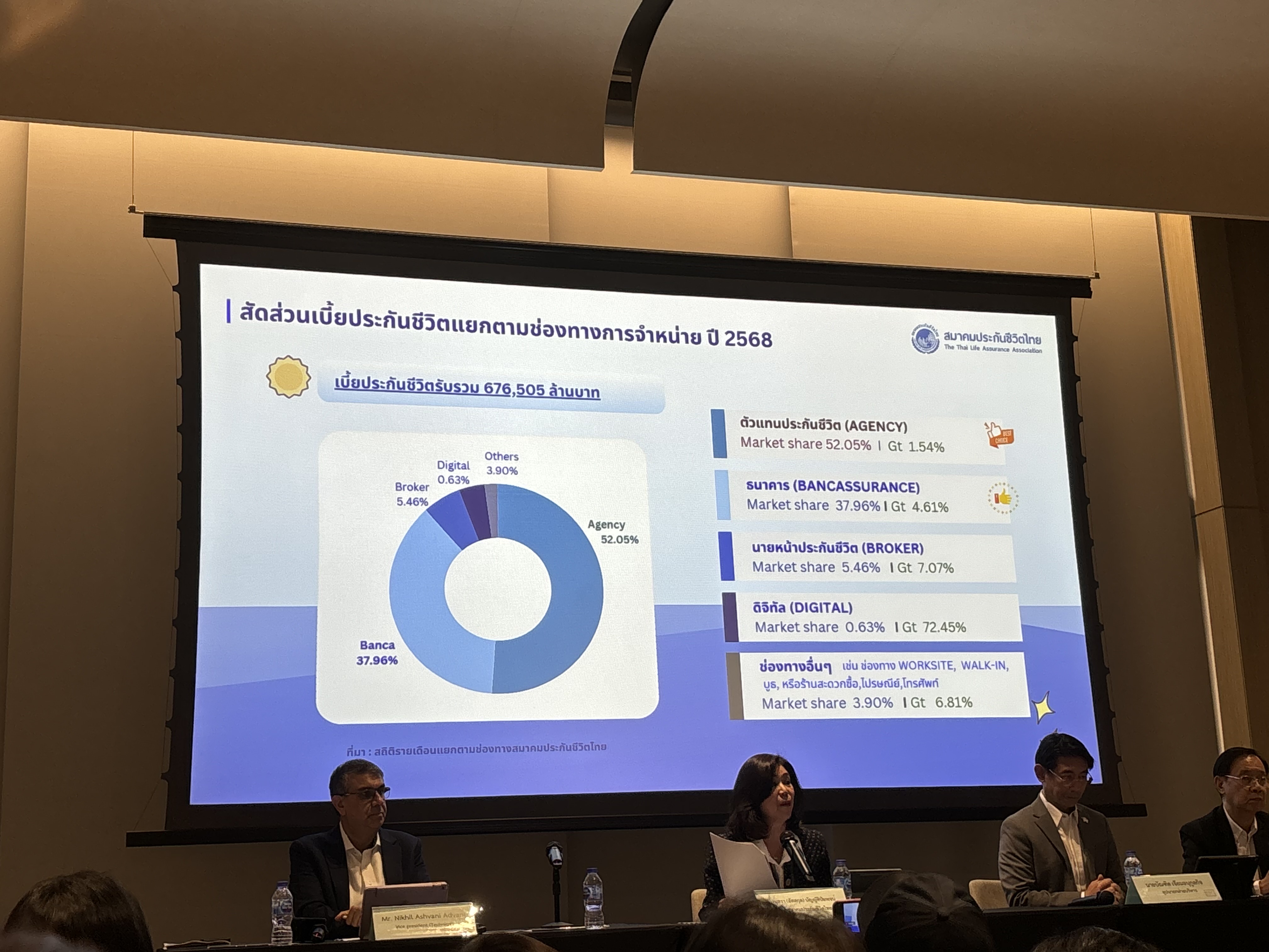 2. การขายผ่านช่องทางธนาคาร (Bancassurance) อัตราการเติบโตเพิ่มขึ้นร้อยละ 4.61 เมื่อเทียบกับปี 2567 คิดเป็นสัดส่วนร้อยละ 37.96