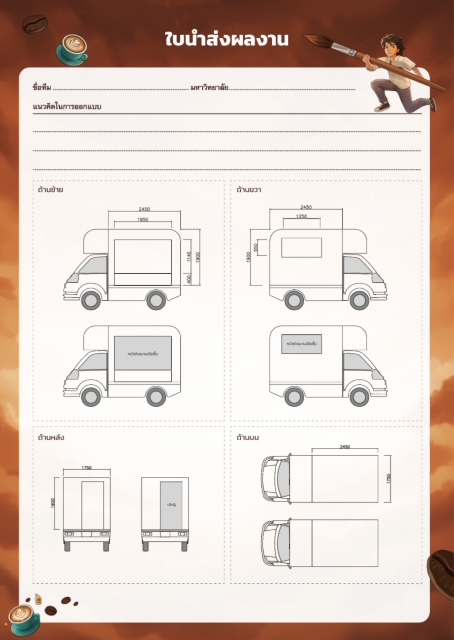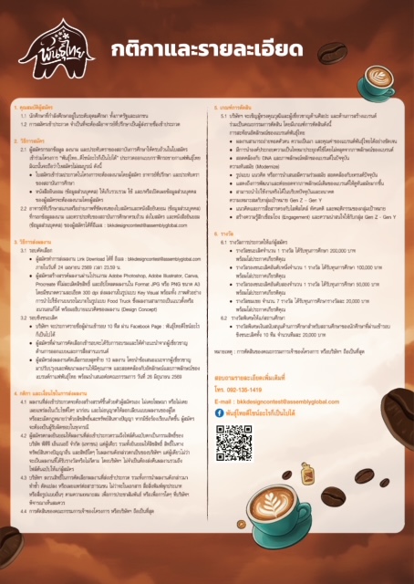 · ส่งผลงานออกแบบในรูปแบบไฟล์ดิจิทัล (Adobe Photoshop, Illustrator ฯลฯ) ความละเอียด 300dpi