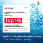 บริษัท ไทยยูเนี่ยน กรุ๊ป จำกัด (มหาชน) หรือ TU ผู้นำอุตสาหกรรมอาหารทะเลระดับโลก ได้รับรางวัล “S&P Global Sustainability Yearbook 2026” โดยผลคะแนนของบริษัทอยู่ในระดับ Top 1% ของโลกในกลุ่มอุตสาหกรรมผลิตภัณฑ์อาหาร ด้วยคะแนนรวม 89 จาก 100 คะแนน ซึ่งนับเป็นคะแนนที่เพิ่มสูงขึ้นจากปีก่อนหน้า และนับเป็นคะแนนสูงที่สุดในบรรดาสมาชิกกลุ่มอุตสาหกรรมเดียวกันที่ได้รับการจัดอันดับในปีนี้