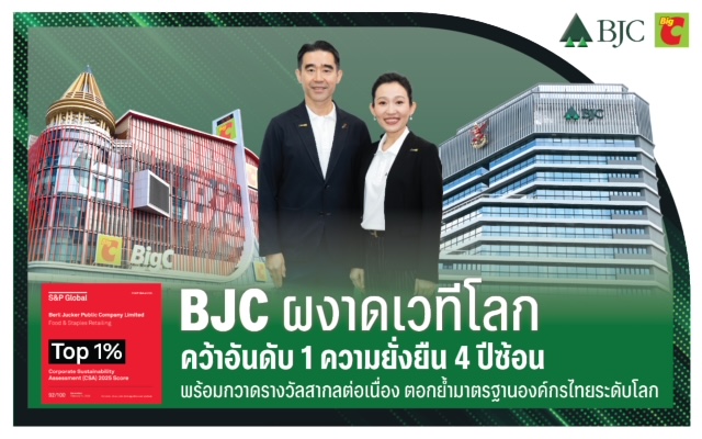 ในปี 2568 BJC ทำคะแนนสูงถึง 92 จาก 100 คะแนน จากการประเมิน S&P Global Corporate Sustainability Assessment (CSA) ซึ่งถือเป็นหนึ่งในมาตรฐานการประเมินความยั่งยืนที่เข้มข้นและได้รับการยอมรับมากที่สุดในระดับสากล