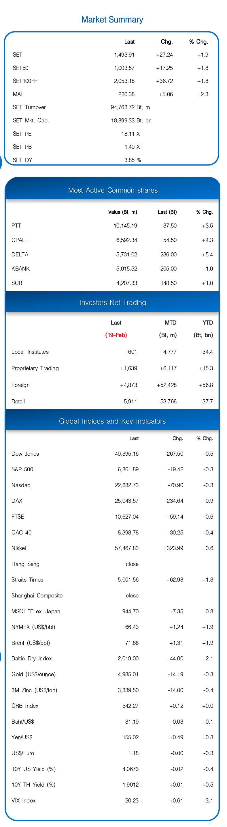 หุ้นโลกวันก่อน (19 ก.พ.)