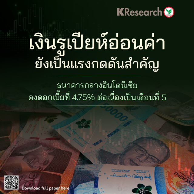 · เศรษฐกิจอินโดนีเซียยังขยายตัวได้แต่ต้องพึ่งแรงกระตุ้นต่อเนื่อง เศรษฐกิจอินโดนีเซียปี 2025 ขยายตัว 5.11% สูงขึ้นจาก 5.03% ในปี 2024 จากแรงหนุนอุปสงค์ในประเทศและมาตรการรัฐ แม้ยังต่ำกว่าเป้าหมายรัฐบาลที่ 5.2% โดยในไตรมาส 1/2026 รัฐบาลเตรียมออกมาตรการกระตุ้นเศรษฐกิจเป็นวงเงิน 760 ล้านดอลลาร์ฯ (12.8 ล้านล้านรูเปียห์) เพื่อช่วยค่าครองชีพ สนับสนุนแรงงานและพยุงการบริโภค ซึ่งจะช่วยประคองเศรษฐกิจระยะสั้น แต่ก็สะท้อนว่าเศรษฐกิจยังต้องพึ่งพานโยบายสนับสนุนต่อเนื่อง ภายใต้สถานการณ์นี้ BI จึงต้องรักษาท่าทีผ่อนคลายแบบระมัดระวัง โดยชั่งน้ำหนักระหว่างการกระตุ้นการเติบโตกับการรักษาเสถียรภาพค่าเงิน
