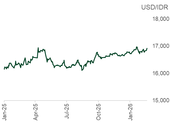 · นอกจากแรงกดดันภายในประเทศแล้ว ปัจจัยภายนอกยังเป็นตัวแปรสำคัญที่จำกัดพื้นที่เชิงนโยบายของ BI โดยความกังวลของนักลงทุนต่ออินโดนีเซียเพิ่มขึ้นหลังจาก MSCI ตั้งข้อสังเกตเรื่องโครงสร้างตลาดหุ้น ตามมาด้วย Moody’s ปรับแนวโน้มอันดับเครดิตเป็นเชิงลบ (ยังคงอันดับ Baa2) ส่งผลให้เงินทุนไหลออกจากทั้งตลาดหุ้นและพันธบัตรในช่วงที่ผ่านมา และกลายเป็นแรงกดดันต่อค่าเงินโดยตรง ซึ่งยิ่งทำให้ธนาคารกลางต้องรักษาระดับดอกเบี้ยไว้ก่อน