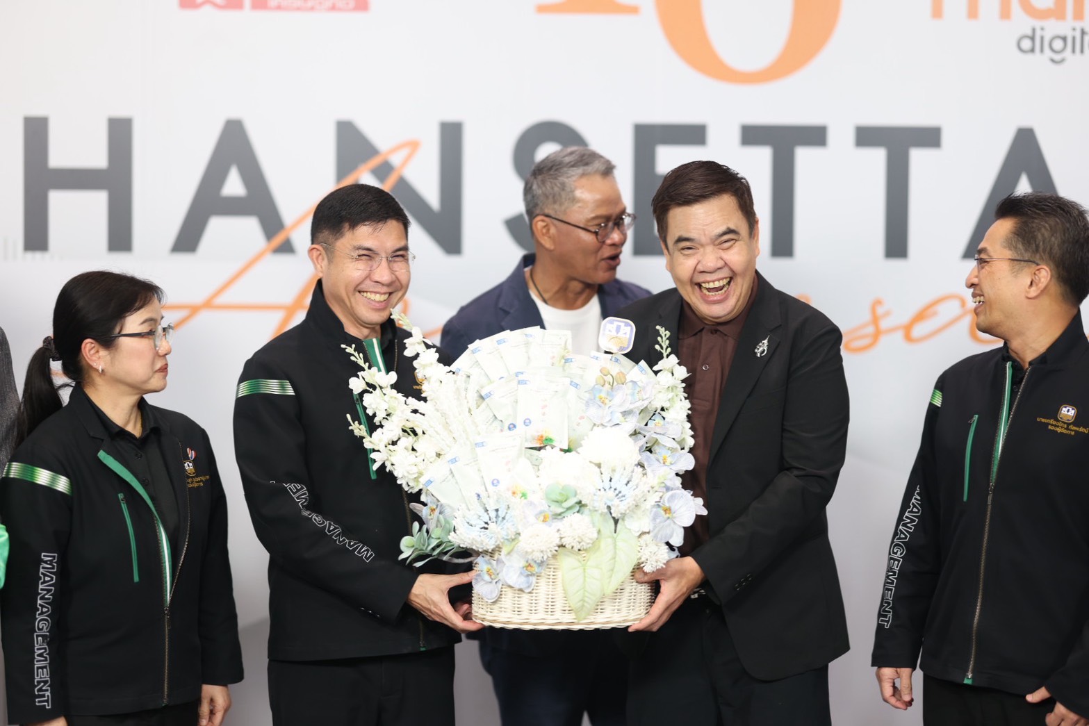 นายฉัตรชัย ศิริไล ผู้จัดการธนาคารเพื่อการเกษตรและสหกรณ์การเกษตร (ธ.ก.ส.) พร้อมด้วยนายเกรียงไกร กัลหะรัตน์ และนางสาวไข่มุก จูงใจจารุมาศ รองผู้จัดการ ธ.ก.ส. ร่วมแสดงความยินดีกับสำนักข่าวฐานเศรษฐกิจ เนื่องในโอกาสครบรอบวันสถาปนา 46 ปี โดยได้นำผลิตภัณฑ์ลูกค้า ธ.ก.ส. ที่ ธ.ก.ส. ร่วมสนับสนุนให้เกิดการพัฒนาและเพิ่มมูลค่าให้เป็นที่รู้จักมากยิ่งขึ้น เพื่อสร้างโอกาสทางการตลาดให้กับผู้ประกอบการทางการเกษตร ได้แก่ ข้าวพร้อมทานตรา “อุ่นอิ่ม” จากสหกรณ์การเกษตรเพื่อการตลาดลูกค้า ธกส ร้อยเอ็ด จำกัด ที่ผลิตจากข้าวทุ่งกุลาร้องไห้ ทั้งข้าวหอมมะลิ ข้าวกล้องหอมมะลิ และข้าวไรซ์เบอรี่ ที่สามารถเปิดรับประทานได้ทันที และเก็บไว้ในอุณหภูมิปกติได้นานถึง 18 เดือน ติดต่อได้ที่ สกต.ร้อยเอ็ด จำกัด โทร. 088 338 2572 สกต.สุรินทร์ โทร 081 955 6719 และ สกต.นครปฐม โทร. 089 456 2117 ข้าวโพดฟรีซดรายด์ จากศูนย์เรียนรู้กสิกรรมไร้สารพิษละโว้ธานี จังหวัดลพบุรี ที่นำข้าวโพดหวานมายกระดับเพิ่มมูลค่าผลผลิตด้วยกระบวนการ freeze dried สามารถรักษาคุณค่าทางสารอาหาร ทั้งรสชาติ สี กลิ่น และเก็บรักษาไว้ได้นานถึง 25 ปี โดยไม่ต้องใส่สารกันบูด รวมทั้งมีการพัฒนาบรรจุภัณฑ์จนได้มาตรฐาน A-Product ติดต่อได้ที่ ศูนย์เรียนรู้กสิกรรมไร้สารพิษละโว้ธานี 080 666 3311 และโจ๊กข้าวหอมภูเขาไฟจากสหกรณ์การเกษตรเพื่อการตลาดลูกค้า ธกส บุรีรัมย์ จำกัด โจ๊กกึ่งสำเร็จรูป ที่ผลิตจากข้าวหอมมะลิแท้ มีกลิ่นหอมเฉพาะตัว เนื้อสัมผัสนุ่มละมุน ที่ผลิตจากภูมิปัญญาและเต็มไปด้วยคุณภาพจากแหล่งปลูกข้าวบุรีรัมย์ อิ่มง่ายใน 2 นาที เพียงใส่น้ำร้อน ตอบโจทย์ผู้บริโภคยุคใหม่ที่ใช้ชีวิตเร่งรีบแต่ยังได้รับประทานอาหารที่เต็มไปด้วยคุณค่าทางสารอาหาร ติดต่อได้ที่ สกต.บุรีรัมย์ จำกัด 044 690 255 ทั้งนี้ ฐานเศรษฐกิจได้มอบของที่ระลึกให้กับผู้ที่มาแสดงความยินดีเป็นพวงกุญแจตุ๊กตาแฮนด์เมดที่ผลิตจากผ้าหมักโคลนและปักลวดลายที่สวยงาม โดยใช้กระบวนการผลิตจาก
