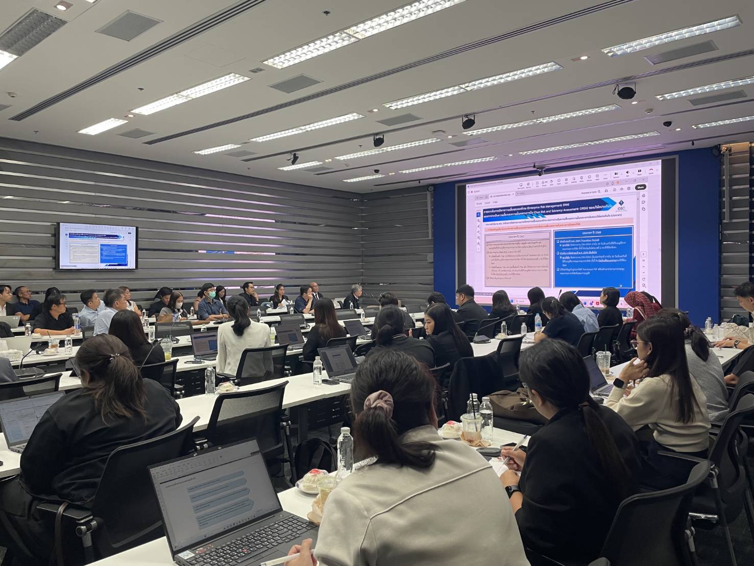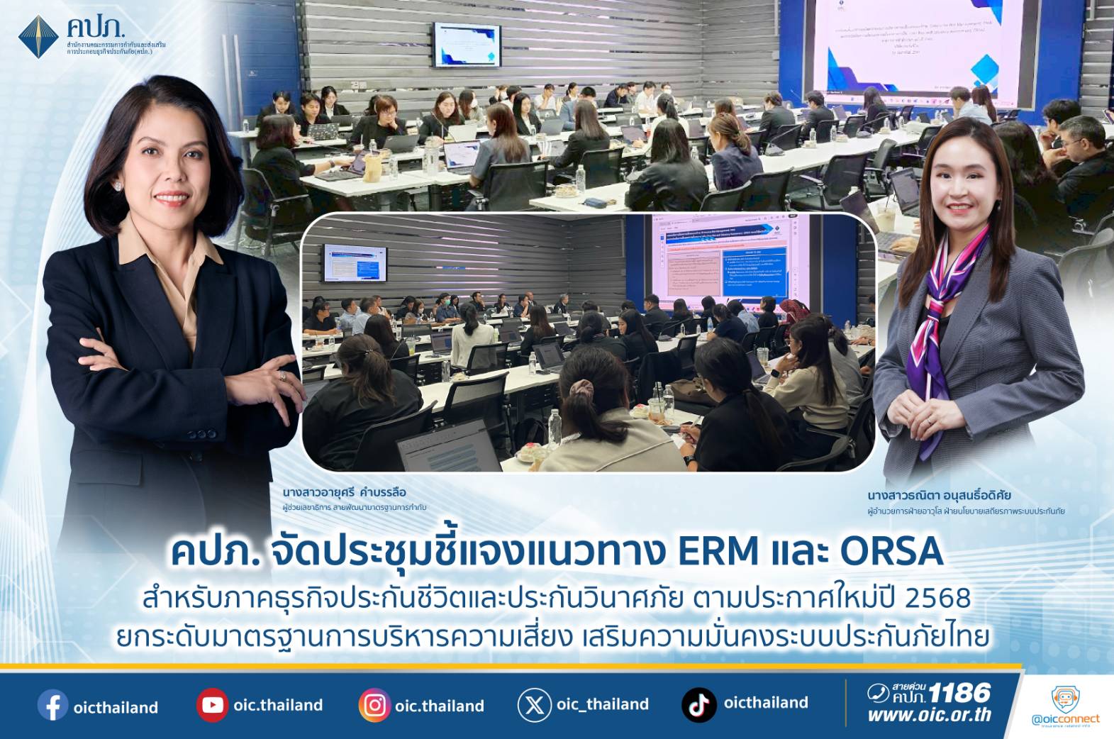 ประกาศฯ ฉบับปี 2568 สำนักงาน คปภ. กำหนดให้บริษัทประกันภัยทุกแห่งต้องส่งรายงาน ERM/ORSA ให้กับสำนักงานเป็นประจำทุกปี โดยต้องมีการประเมินความเพียงพอของเงินกองทุนที่สอดคล้องกับแผนธุรกิจและการบริหารความเสี่ยงของ บริษัทประกันภัยอย่างสม่ำเสมอ รวมถึงต้องจัดทำรายงานสถานะความเสี่ยงให้กับสำนักงานเป็นประจำทุก 6 เดือน การประชุมครั้งนี้จัดขึ้น เพื่อให้บริษัทประกันภัยเข้าใจถึงการบริหารความเสี่ยงได้อย่างเป็นระบบ ครอบคลุมทุกมิติของความเสี่ยงที่อาจเกิดขึ้นจากการดำเนินธุรกิจ และสามารถประเมินความเพียงพอของเงินกองทุนได้อย่างเหมาะสมในสถานการณ์ปกติและสถานการณ์วิกฤต อันจะช่วยเสริมสร้างความมั่นคงทางการเงิน และยกระดับมาตรฐานการกำกับดูแลธุรกิจประกันภัยไทยให้สอดคล้องกับแนวปฏิบัติสากล ทั้งนี้ ที่ประชุมได้เน้นย้ำถึงความสำคัญของการนำกรอบการบริหารความเสี่ยงแบบองค์รวม (ERM) มาใช้เป็นเครื่องมือหลักในการกำกับดูแลและบริหารจัดการความเสี่ยงขององค์กร โดยครอบคลุมตั้งแต่การกำหนดนโยบายการบริหารความเสี่ยง การกำหนดระดับความเสี่ยงที่ยอมรับได้ (Risk Appetite) การพัฒนาวัฒนธรรมองค์กรด้านการบริหารความเสี่ยง (Risk Culture) ตลอดจนการติดตามและประเมินความเพียงพอของเงินกองทุนอย่างต่อเนื่อง ผ่านกระบวนการ ORSA ซึ่งจะช่วยให้ บริษัทประกันภัยสามารถวิเคราะห์ผลกระทบจากปัจจัยความเสี่ยงในอนาคต วางแผนบริหารเงินกองทุนได้อย่างเหมาะสม และเสริมสร้างความมั่นคงทางการเงินให้สอดคล้องกับระดับความเสี่ยงและแผนการดำเนินธุรกิจในระยะยาว