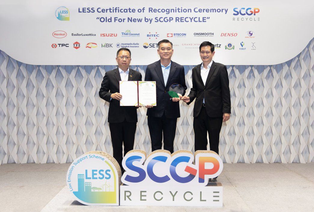 บริษัท กรุงเทพประกันภัย จำกัด (มหาชน) โดยนายพิสิฐ คิดเจริญสุข (กลาง) รองผู้อำนวยการอาวุโส ฝ่ายสินไหมทดแทนยานยนต์ เป็นผู้แทนบริษัทฯ รับมอบโล่พร้อมใบประกาศเกียรติคุณ โครงการสนับสนุนกิจกรรมลดก๊าซเรือนกระจก (Low Emission Support Scheme: LESS) ภายใต้โครงการ “Old For New โดย SCGP RECYCLE” ในพิธีมอบใบประกาศเกียรติคุณภายใต้โครงการสนับสนุนกิจกรรมลดก๊าซเรือนกระจก ซึ่งได้รับเกียรติจากนายณกรณ์ ตรรกวิรพัท?? (ซ้าย) ผู้อำนวยการองค์การบริหารจัดการก๊าซเรือนกระจก (องค์การมหาชน) และนายดนัยเดช เกตุสุวรรณ (ขวา) ประธานเจ้าหน้าที่บริหารสายการเงิน บริษัท เอสซีจี แพคเกจจิ้ง จำกัด (มหาชน) เป็นผู้มอบ ณ อาคารอเนกประสงค์ สำนักงานใหญ่ SCG บางซื่อ กรุงเทพฯ เมื่อวันที่ 25 กุมภาพันธ์ 2569