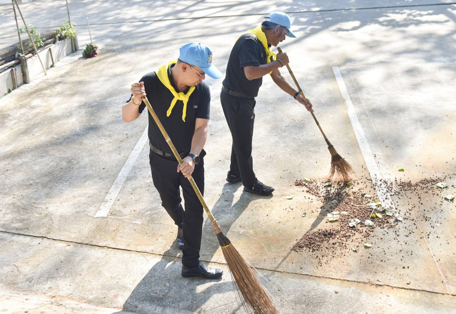 3. ทำนุบำรุงพระพุทธศาสนาและสิ่งแวดล้อม โครงการ “กวาดวัด กวาดใจ” โดยได้ร่วมใจกันทำความสะอาดและปรับปรุงภูมิทัศน์ ณ วัดตำหนักใต้ จ.นนทบุรี พร้อมร่วมบริจาคปัจจัยบูรณะพระอารามที่ใช้ในการปฏิบัติศาสนกิจของพระสงฆ์และพุทธศาสนิกชน เพื่อสืบสานพระพุทธศาสนาและฝึกฝนจิตใจให้มีความอ่อนน้อมถ่อมตน