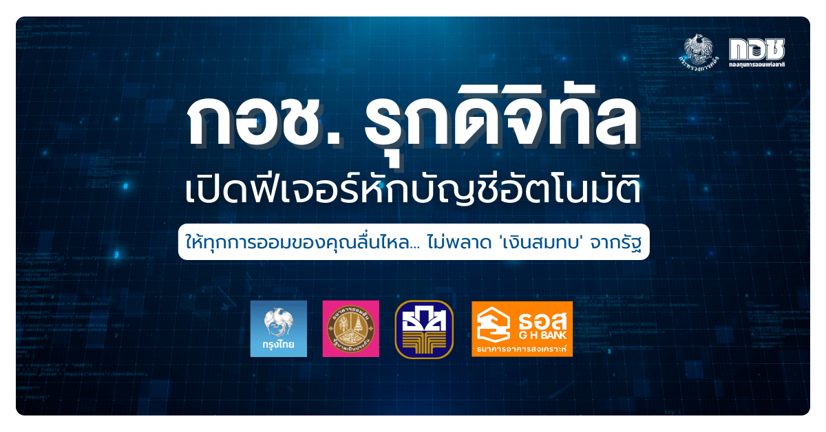 กองทุนการออมแห่งชาติ (กอช.) ยกระดับบริการมุ่งสู่ดิจิทัลอย่างเต็มรูปแบบ พร้อมเดินหน้าสร้าง "วินัยการออม" ให้เป็นเรื่องง่าย เข้าถึงได้ทุกที่ทุกเวลา โดยเปิดตัวบริการสมัคร "หักบัญชีเงินฝากอัตโนมัติ (Direct Debit)" ผ่าน แอปพลิเคชัน Krungthai NEXT เพื่ออำนวยความสะดวกให้สมาชิกออมเงินได้ต่อเนื่องทุกเดือน ไร้กังวลลืมออม ไม่พลาดรับสิทธิ์เงินสมทบจากรัฐ