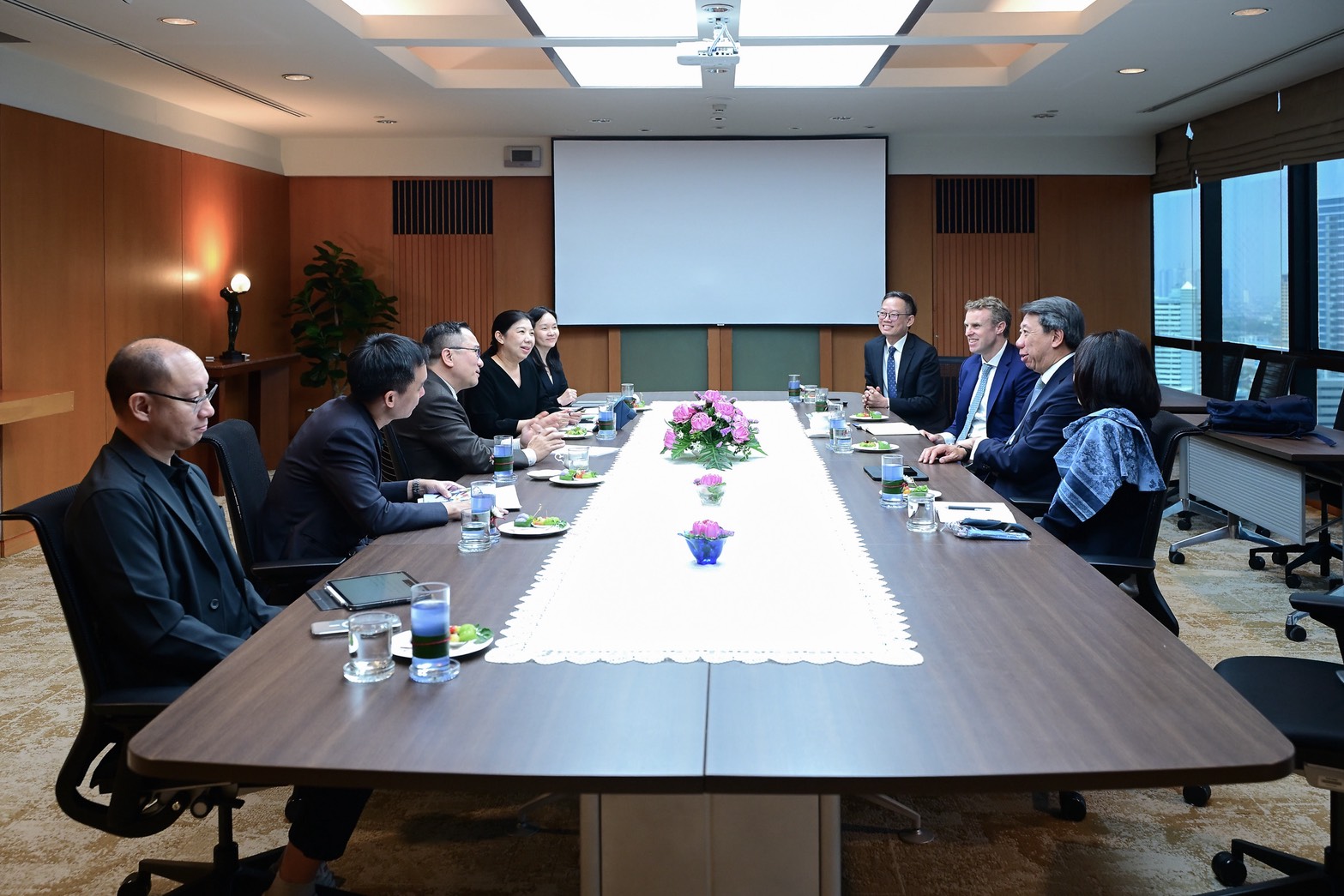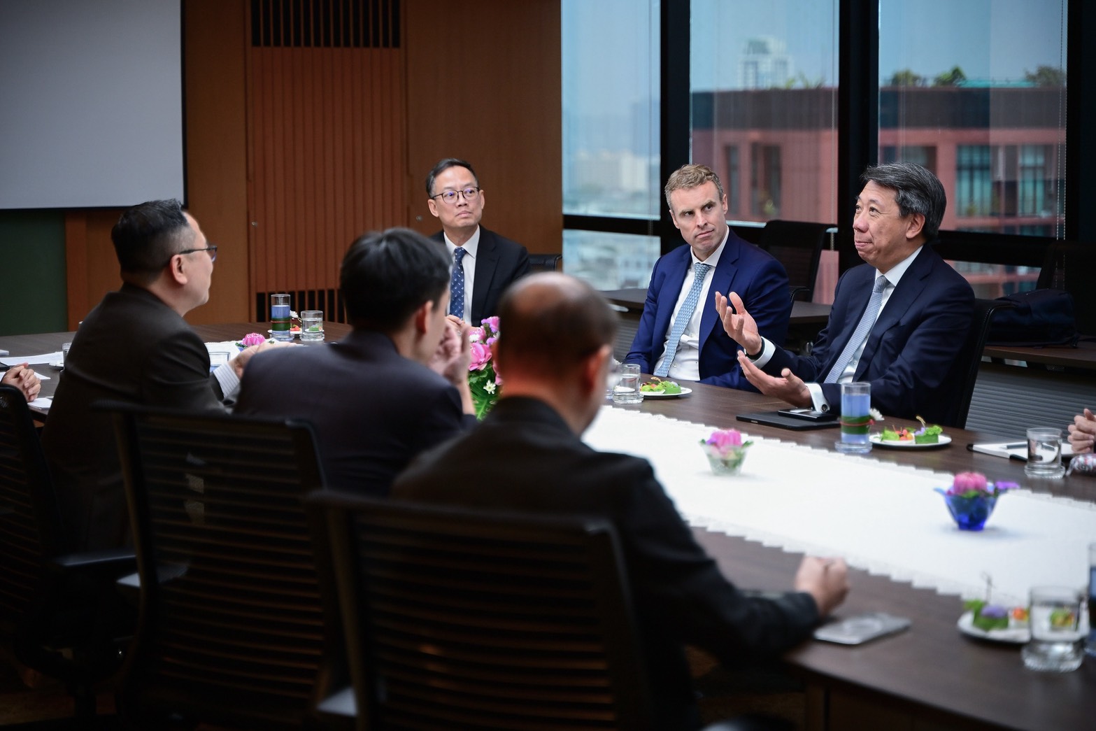 นายชลัช รัตนบุญนิธิ กรรมการผู้จัดการ ธนาคารเพื่อการส่งออกและนำเข้าแห่งประเทศไทย (EXIM BANK) ให้การต้อนรับนายเบนจามิน ฮัง กรรมการผู้จัดการฝ่ายธุรกิจระหว่างประเทศ ธนาคารสแตนดาร์ดชาร์เตอร์ด และประธานกรรมการธนาคารสแตนดาร์ดชาร์เตอร์ด ฮ่องกง จีน และสิงคโปร์ และแลกเปลี่ยนมุมมองเกี่ยวกับสถานการณ์การค้าระหว่างประเทศ การเปลี่ยนแปลงทางภูมิรัฐศาสตร์ และผลกระทบต่อผู้ส่งออกไทย โดยเฉพาะ SMEs รวมถึงแนวทางความร่วมมือด้านนโยบายส่งเสริมการค้าและการลงทุนของไทยในภูมิภาคเอเชีย ตะวันออกกลาง และแอฟริกา ซึ่งเป็นตลาดใหม่ (New Frontier) ที่มีศักยภาพการเติบโต โดย EXIM BANK ภายใต้บทบาท “Export Co-pilot” พร้อมส่งเสริมผู้ประกอบการไทยขยายธุรกิจสู่ตลาดโลก ขับเคลื่อนการพัฒนาเศรษฐกิจอย่างยั่งยืน ณ EXIM BANK สำนักงานใหญ่ เมื่อวันที่ 5 มีนาคม 2569
