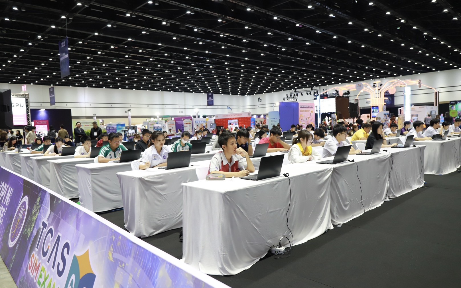 อีกหนึ่งกิจกรรมสำคัญที่ได้รับความสนใจจากนักเรียนระดับมัธยมศึกษาคือ TCAS SIM EXAM การจำลองสนามสอบเสมือนจริง ที่เปิดโอกาสให้ผู้เข้าร่วมทดลองสอบในบรรยากาศใกล้เคียงกับการสอบจริงตามระบบ TCAS โดยผู้เข้าสอบสามารถทดลองทำข้อสอบ พร้อมรับทราบผลคะแนนทันที เพื่อประเมินศักยภาพของตนเองและเตรียมความพร้อมก่อนเข้าสู่สนามสอบจริงในอนาคต