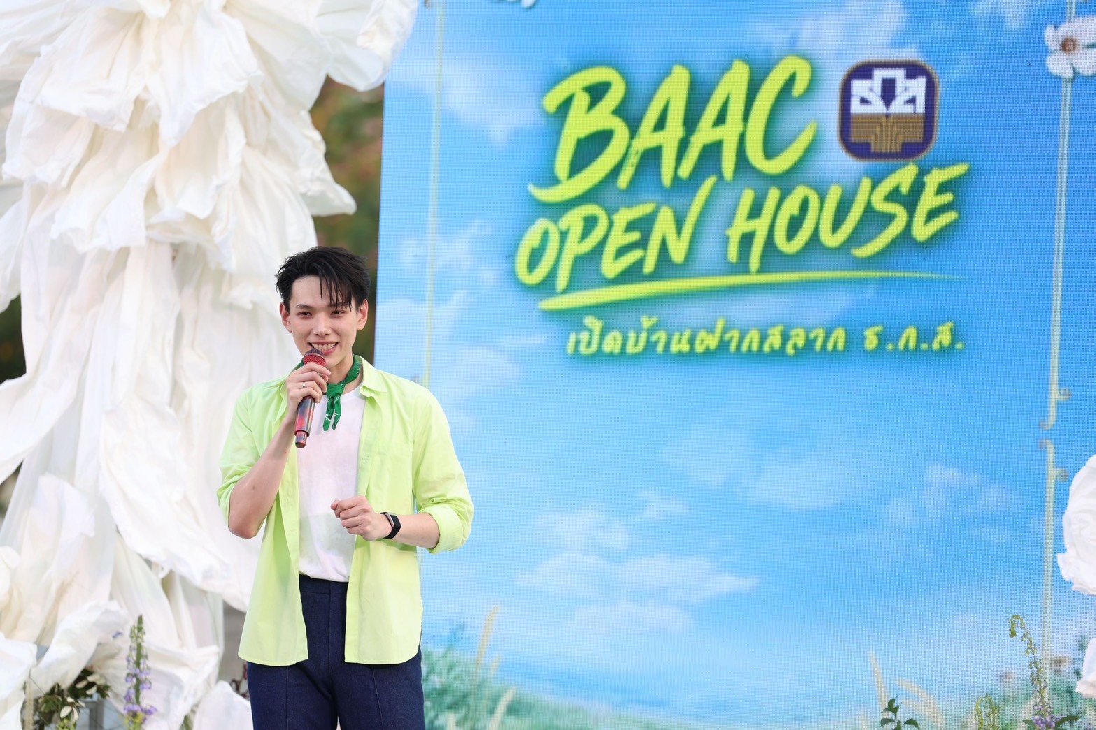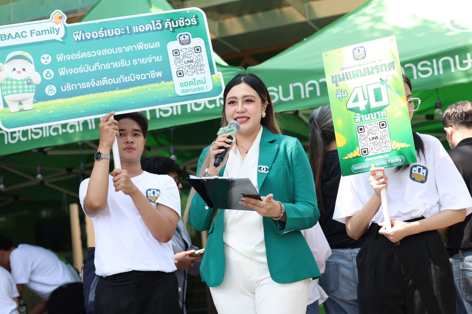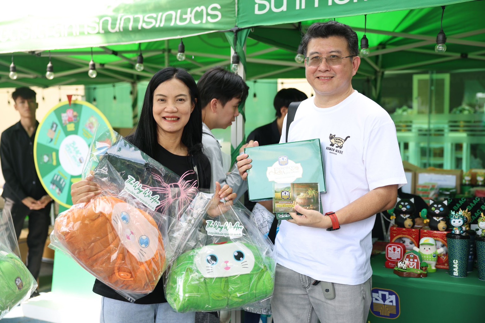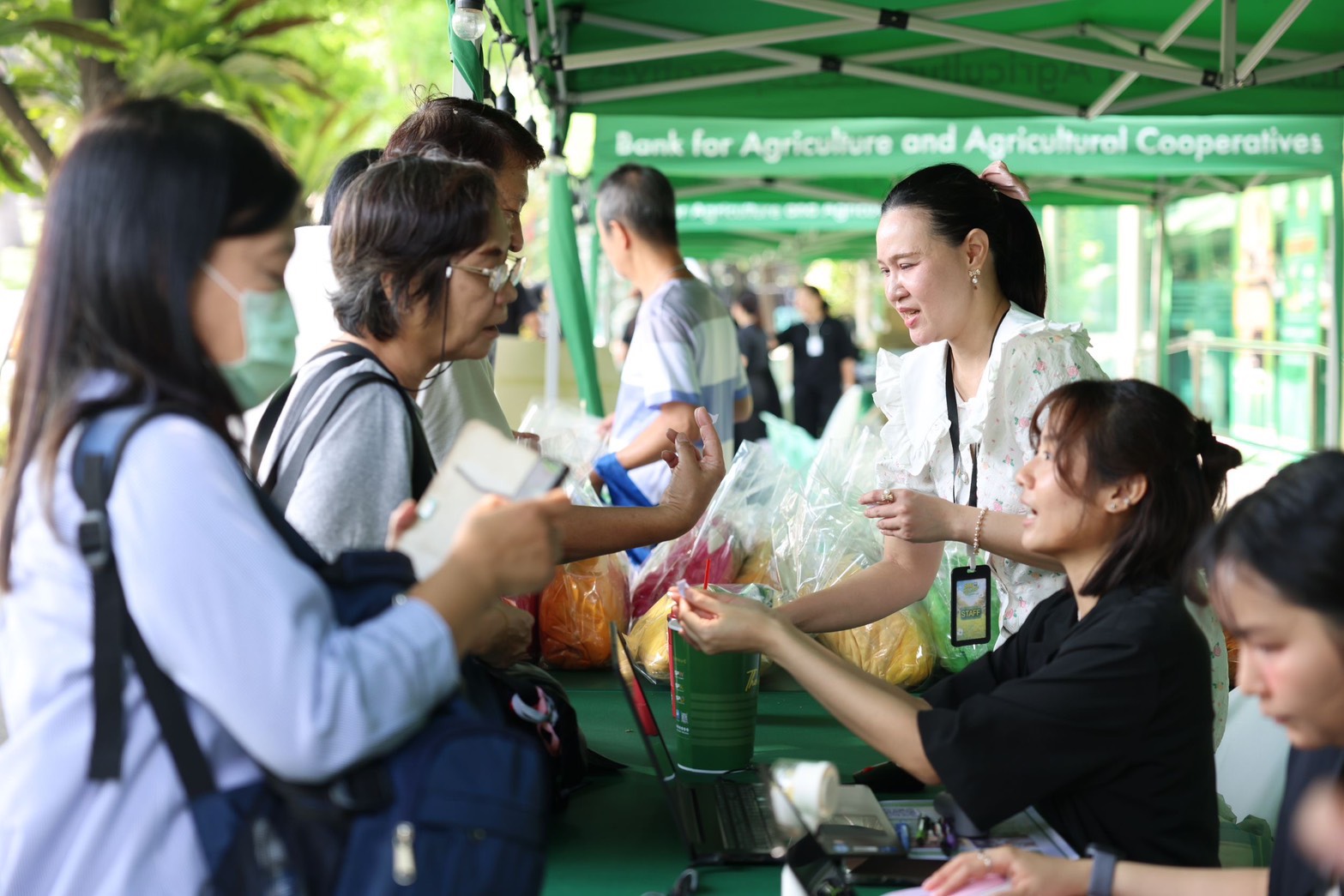 นายฉัตรชัย ศิริไล ผู้จัดการธนาคารเพื่อการเกษตรและสหกรณ์การเกษตร (ธ.ก.ส.) ต้อนรับประชาชนที่มาเข้าร่วมกิจกรรม BAAC Open House เปิดบ้านฝากสลาก ธ.ก.ส. เพื่อเปิดประสบการณ์ใหม่ในการเสริมสร้างพฤติกรรมการออมเงินให้กับคนเมือง พร้อมนำเสนอผลิตภัณฑ์และบริการทางการเงินที่ตอบโจทย์ไลฟ์สไตล์ในยุคปัจจุบัน โดยภายในงานมีบูธให้บริการทางการเงินและสิทธิพิเศษสำหรับผู้เปิดบัญชีและฝากสลากออมทรัพย์ ธ.ก.ส. อาทิ สลากออมทรัพย์ ธ.ก.ส. ชุดกระพ้อมทองและชุดกระพ้อมเงิน ที่มาพร้อมโปรโมชันสุดพิเศษเฉพาะในงาน ได้แก่ เมื่อฝากสลากออมทรัพย์ชุดใดก็ได้ จำนวน 20,000 บาท รับหมอนผ้าห่ม Agri Animal จำนวน 1 ชิ้น คละแบบ เมื่อฝากสลากฯ 50,000 บาท รับหมอนผ้าห่ม Agri Animal จำนวน 2 ชิ้น คละแบบ และเมื่อฝากสลากฯ 1,000,000 บาท รับหมอนผ้าห่ม Agri Animal จำนวน 4 ชิ้นครบเซ็ต ไม่ซ้ำแบบ และเมื่อทำธุรกรรมที่เคาน์เตอร์สาขาภายในงาน (ยกเว้นการปรับสมุดและถอนเงิน) รับคูปองลุ้นของที่ระลึกจาก ธ.ก.ส. สุด Limited Edition กับกิจกรรม Happy Hour Happy Surprise ให้ผู้เข้าร่วมงานได้ร่วมสนุกทุกชั่วโมง พร้อมลุ้นรับของที่ระลึกสุดพิเศษจาก ธ.ก.ส. และยังมีกิจกรรมพิเศษ DIY สมุดโน้ตเล่มเดียวในโลก เมื่อฝากสลากออมทรัพย์ ธ.ก.ส. ชุดขวัญถุง ไม่จำกัดขั้นต่ำ ณ เคาน์เตอร์สาขาภายในงาน รับสมุดปฏิทินนักออม ธ.ก.ส. พร้อมกิจกรรม DIY ทั้งนี้ ภายในงานยังมีการออกบูธร้านอาหารและเครื่องดื่ม รวมถึงการจำหน่ายผลิตภัณฑ์แกลมเกษตรจากลูกค้า ธ.ก.ส. ที่มาร่วมสร้างสีสันและให้บริการแก่ผู้เข้าร่วมงาน อาทิ โกโก้และเครปในตำนาน ผลิตภัณฑ์แกลมเกษตร ทั้งข้าวโพดมัมมี่ (freeze dried) ที่นำข้าวโพดหวานมายกระดับเพิ่มมูลค่าผลผลิตด้วยกระบวนการ freeze dried สามารถรักษาคุณค่าทางสารอาหารทั้งรสชาติ สี กลิ่น เก็บรักษาไว้ได้นานถึง 25 ปี โดยไม่ต้องใส่สารกันบูด รวมทั้งมีการพัฒนาบรรจุภัณฑ์จนได้มาตรฐาน A-Product ติดต่อได้ที่ ศูนย์เรียนรู้กสิกรรมไร้สารพิษละโว้ธานี จังหวัดลพบุรี โทร. 080 666 3311 และโจ๊กข้าวหอมภูเขาไฟ โจ๊กกึ่งสำเร็จรูปที่ผลิตจากข้าวหอมมะลิแท้ มีกลิ่นหอมเฉพาะตัว เนื้อสัมผัสนุ่มละมุน ที่ผลิตจากภูมิปัญญาและเต็มไปด้วยคุณภาพจากแหล่งปลูกข้าวบุรีรัมย์ อิ่มง่ายใน 2 นาที เพียงใส่น้ำร้อน ตอบโจทย์ผู้บริโภคยุคใหม่ที่ใช้ชีวิตเร่งรีบ แต่ยังได้รับประทานอาหารที่เต็มไปด้วยคุณค่าทางสารอาหาร ติดต่อได้ที่ สหกรณ์การเกษตรเพื่อการตลาดลูกค้า ธกส บุรีรัมย์ จำกัด โทร. 044 690 255