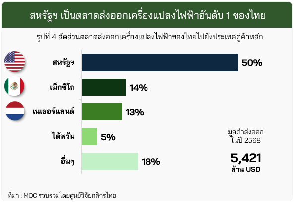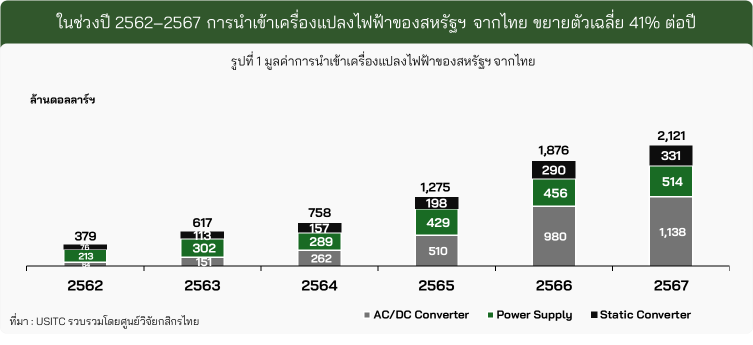 การเติบโตของการส่งออกเครื่องแปลงไฟฟ้าไทยไปสหรัฐฯ