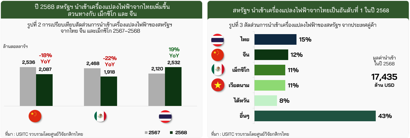 ในปี 2568 สหรัฐฯ นำเข้าเครื่องแปลงไฟฟ้าจากไทยมากที่สุด