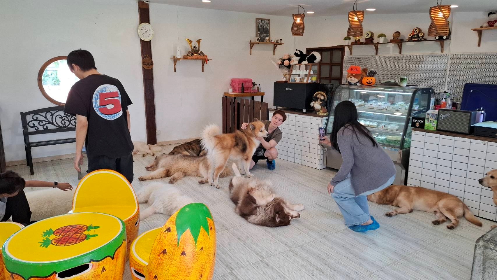 2. “BoxBox Dog Cafe” คาเฟ่สุนัข ตั้งอยู่ที่ อ.สันทราย จ.เชียงใหม่ ที่นี้ไม่ได้เป็นเพียงสถานที่พักผ่อน ให้คนรักน้องหมา มาเล่นสนุกเพลิดเพลินเท่านั้น แต่ถูกออกแบบให้เป็นพื้นที่เรียนรู้สำหรับคนที่อยากเลี้ยงสัตว์ แต่ยังไม่พร้อม ให้เข้ามาศึกษาพฤติกรรมของสุนัขแต่ละสายพันธุ์เสียก่อน นับเป็นจุดเริ่มต้นและสร้างความเข้าใจระหว่างคนกับสัตว์เลี้ยง ก่อนตัดสินจะเลี้ยงอย่างจริงจัง ป้องกันสัตว์เลี้ยงถูกทอดทิ้ง