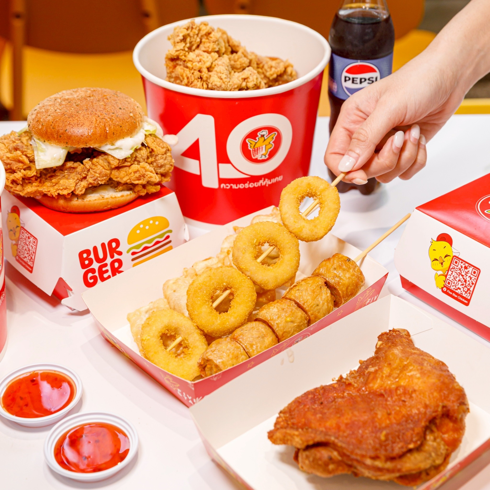 แม้จะพัฒนารูปแบบร้านใหม่ แต่ “ห้าดาว” ยังคงเอกลักษณ์ด้านรสชาติที่ครองใจลูกค้ามาอย่างยาวนาน ด้วยเมนูไก่ย่างและไก่ทอดสูตรต้นตำรับที่หอมเครื่องเทศ พร้อมเพิ่มสีสันด้วยเมนูเบอร์เกอร์ไก่ชิ้นโตที่ทานง่าย พกพาสะดวก
