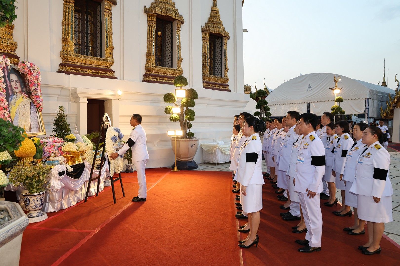 นายอัครุตม์ สนธยานนท์ ประธานกรรมการธนาคารอาคารสงเคราะห์ (ธอส.) พร้อมด้วยนายชุมพล สุวรรณกิจบริหาร กรรมการธนาคาร ดร.มหัทธนะ อัมพรพิสิฏฐ์ กรรมการผู้จัดการ คณะผู้บริหาร และพนักงานธนาคาร จำนวน 100 คน เข้าร่วมพิธีฯ ในโอกาสได้รับพระราชทานพระบรมราชานุญาตให้เป็นเจ้าภาพร่วมพระพิธีธรรมสวดพระอภิธรรมพระบรมศพ สมเด็จพระนางเจ้าสิริกิติ์ พระบรมราชินีนาถ พระราชชนนีพันปีหลวง ด้วยความจงรักภักดี และน้อมรำลึกในพระมหากรุณาธิคุณอันหาที่สุดมิได้ ณ พระที่นั่งดุสิตมหาปราสาท ในพระบรมมหาราชวัง กรุงเทพมหานคร เมื่อวันที่ 15 มีนาคม 2569
