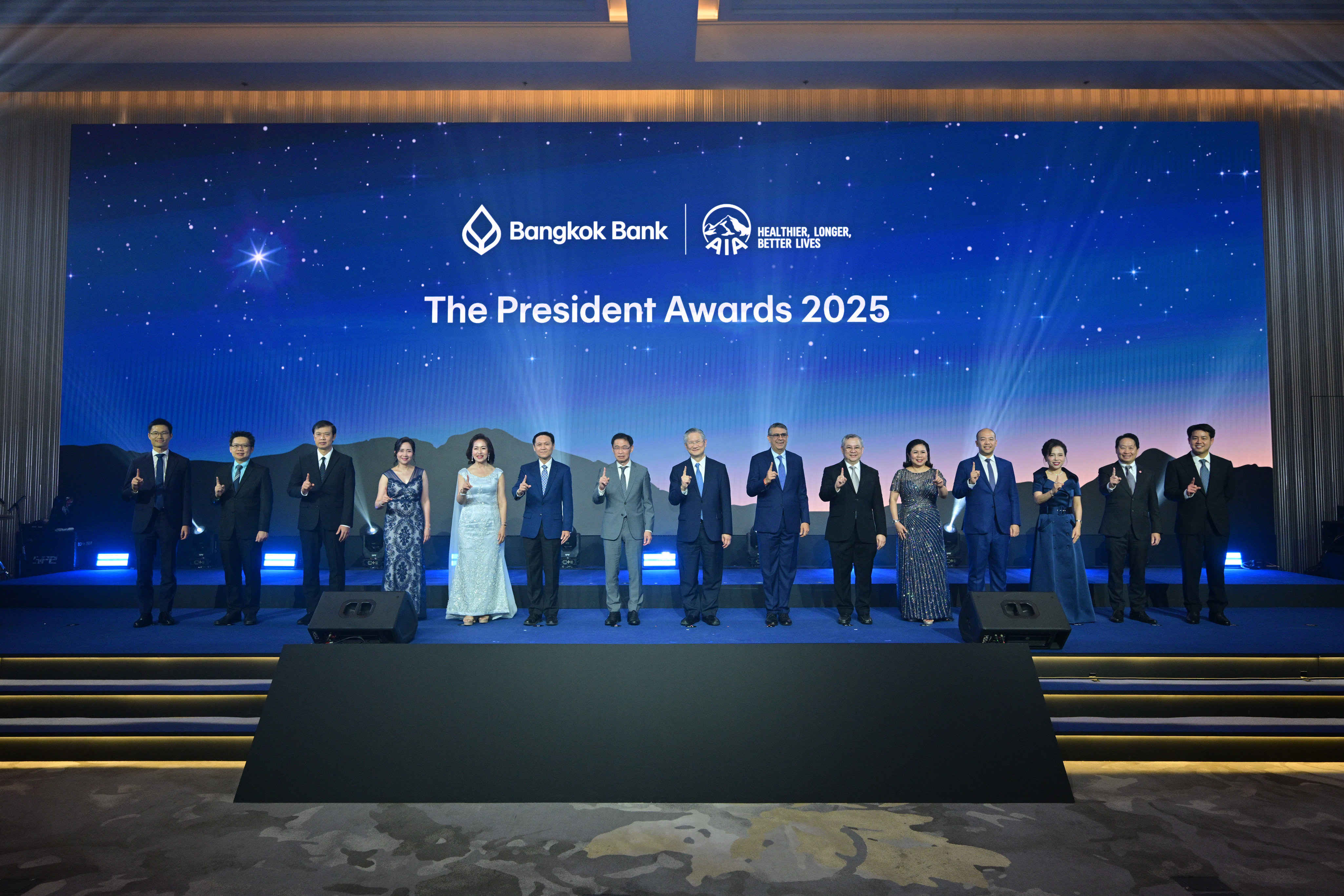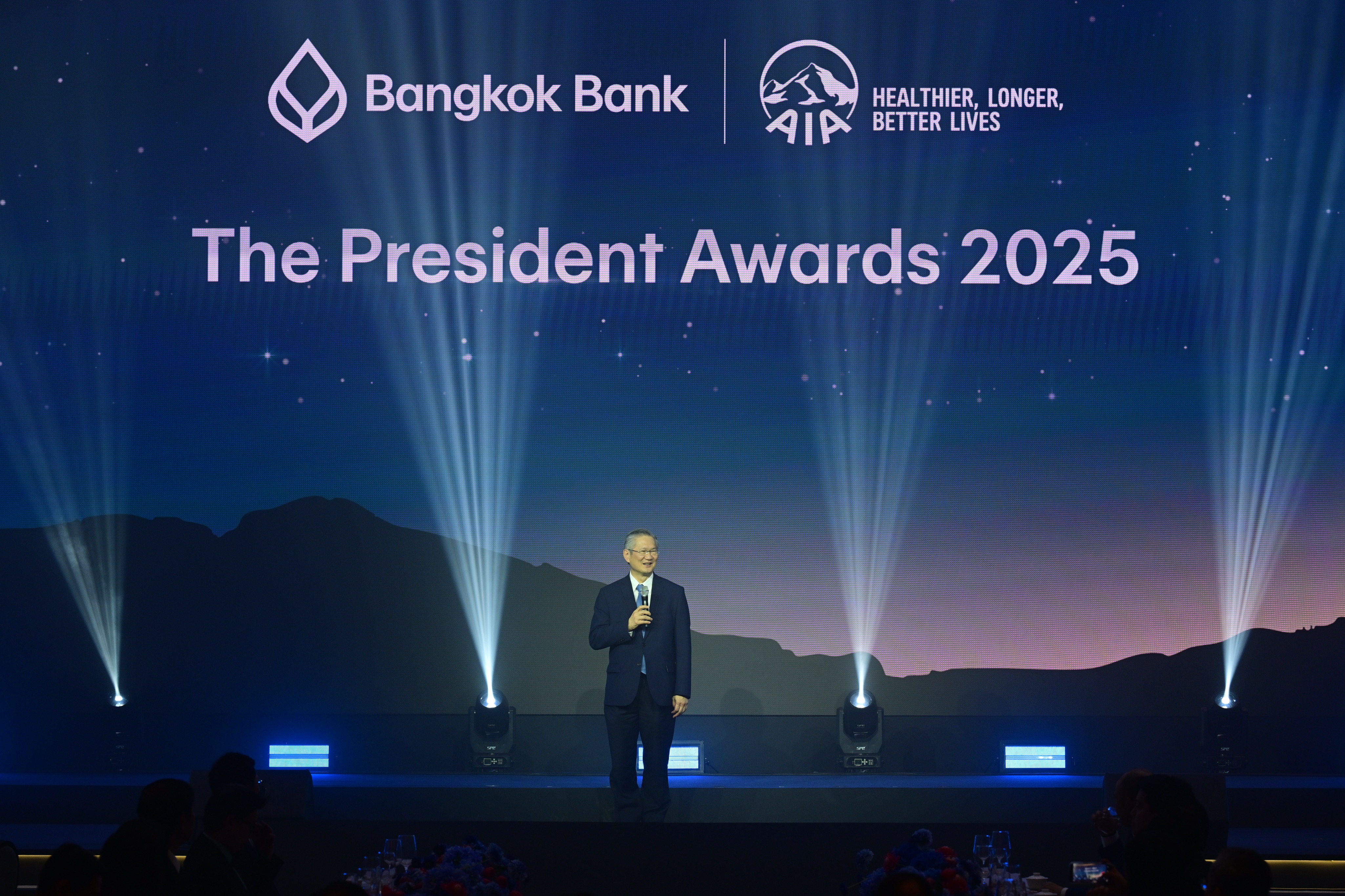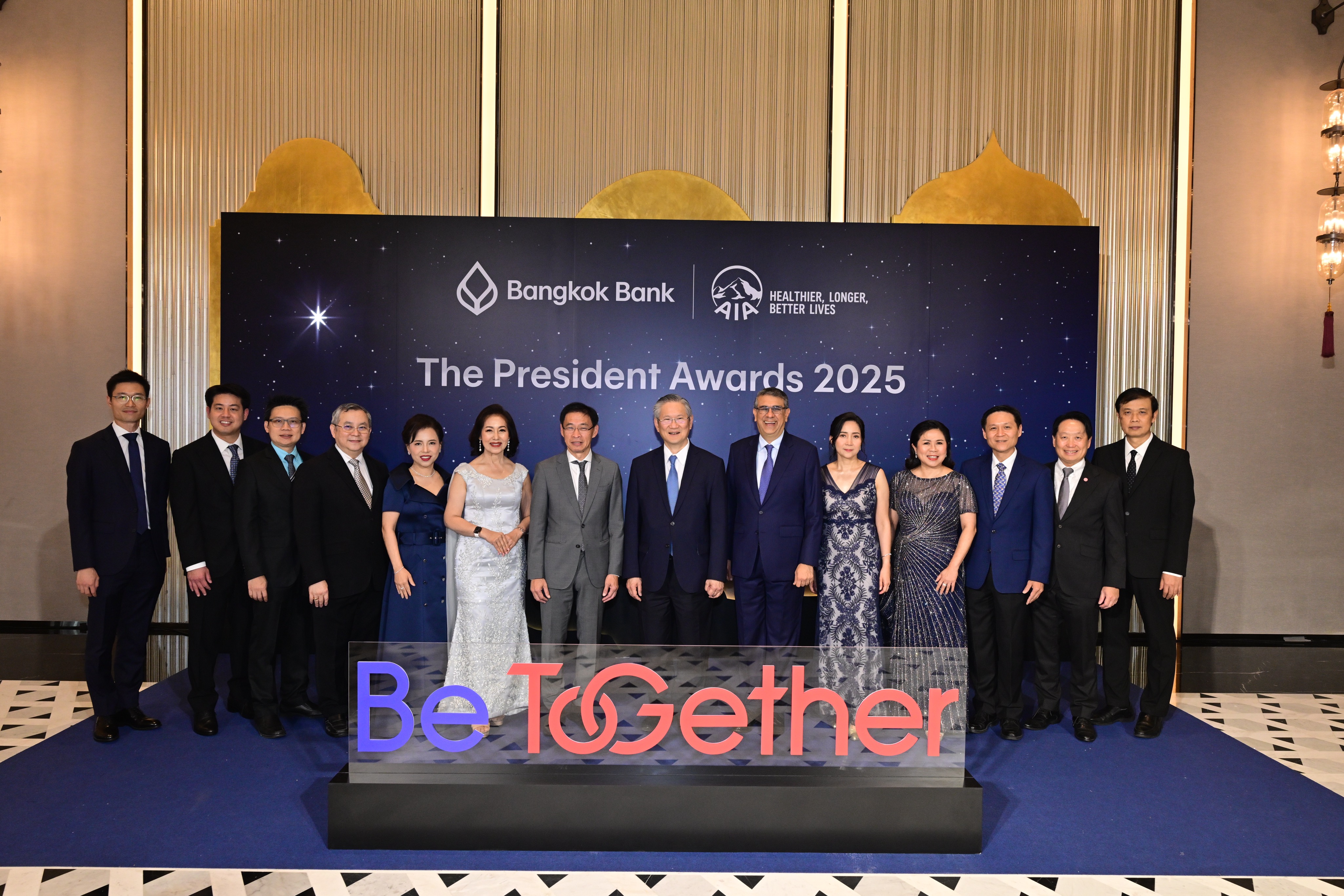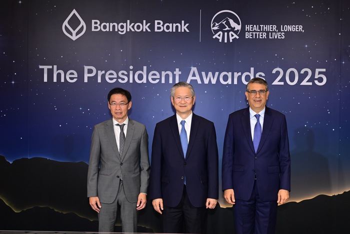 เปล่งประกายความสำเร็จ-ธนาคารกรุงเทพ ร่วมกับเอไอเอ ประเทศไทย มอบรางวัลทรงคุณค่า 'The President Award 2025' ครั้งที่ 5 เพื่อฉลองความสำเร็จให้กับทีมงานนักขายของธนาคารที่มีผลงานขายประกันชีวิตดีเด่น ประจำปี 2568 รวมทั้งสิ้น 180 รางวัล เมื่อวันที่ 21 มีนาคม 2569 ณ ห้องแกรนด์บอลรูม 2 โรงแรมเดอะ ริทซ์-คาลตัน กรุงเทพ