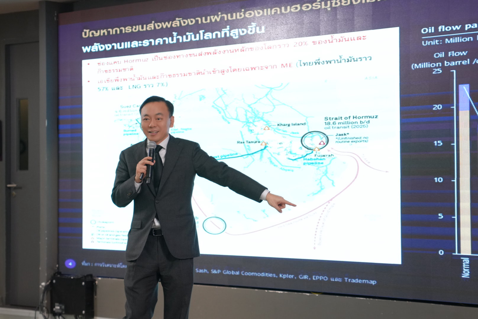 ดร.ยรรยง ไทยเจริญ ประธานเจ้าหน้าที่บริหารสายงานวิจัยเศรษฐกิจและความยั่งยืน ศูนย์วิจัยเศรษฐกิจและธุรกิจ ธนาคารไทยพาณิชย์ (SCB EIC) และนางสาวโชติกา ชุ่มมี ผู้จัดการกลุ่มธุรกิจสินค้าเกษตรและอุตสาหกรรมการผลิต SCB EIC เปิดเผยถึง สภาวะเศรษฐกิจไทย ปี 2569 ท่ามกลางสงครามตะวันออกกลางที่กระทบราคาพลังงานอย่างรุนแรงว่า