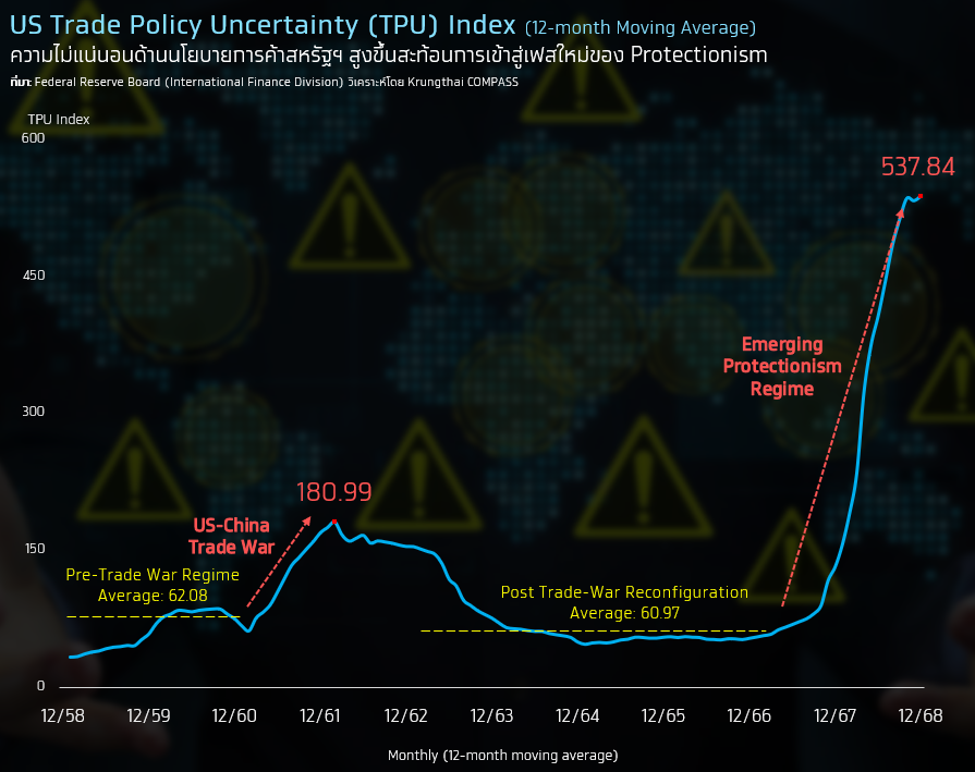 ปัจจุบันความไม่แน่นอนด้านการค้าของสหรัฐฯ สูงกว่าช่วงสงครามการค้าเดิมอย่างมีนัยสำคัญ