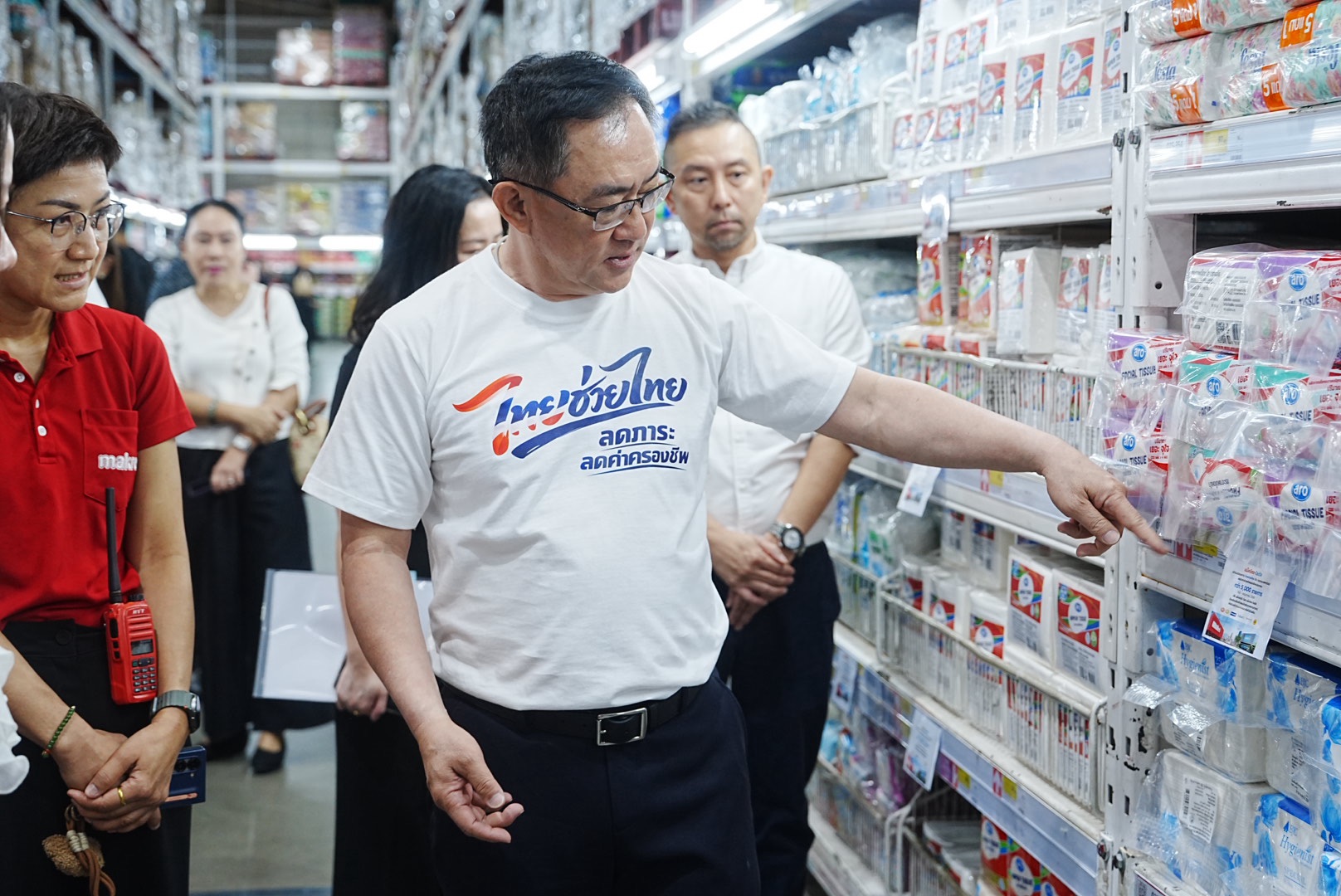 อธิบดีพูนพงษ์ฯ กล่าวต่อว่า วันนี้ (วันจันทร์ที่ 30 มีนาคม 2569) ได้ลงพื้นที่ 4 ห้างโมเดิร์นเทรด ได้แก่ *ห้างแม็คโคร สาขานครอินทร์ *ห้างโลตัส สาขานครอินทร์ *ท็อป ซูเปอร์มาร์เก็ต สาขาเซ็นทรัล เวสเกต และ *GO Wholesale สาขารังสิต เพื่อตรวจความพร้อมของร้านค้าก่อนเริ่มโครงการฯ ในวันที่ 1 เมษายน ที่กำลังจะถึงนี้ โดย 4 ห้างดังกล่าวมีประชาชนเข้ามาจับจ่ายใช้สอยซื้อสินค้าอุปโภค-บริโภคจำนวนมาก มีการจัดโปรโมชันสินค้าราคาพิเศษมาอย่างต่อเนื่อง และมีสินค้า House Brand เป็นของตัวเอง เมื่อเข้าร่วมโครงการไทยช่วยไทยฯ กับกระทรวงพาณิชย์ จึงสามารถลดราคาสินค้าได้ในราคาที่พิเศษมากยิ่งขึ้น ซึ่งช่วยลดภาระค่าครองชีพแก่ประชาชนได้เพิ่มมากขึ้นด้วยเช่นกัน